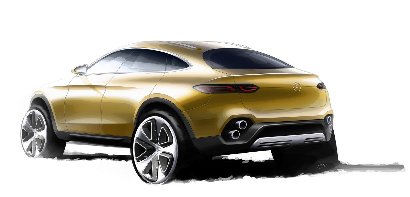 Drive-train of the concpet car is similar to that of the C450 AMG Sport – a twin-turbo, 3.0-liter, V6 petrol unit that produces 362 hp of power and 520 Nm of torque, which is mated to a 9G-Tronic nine-speed automatic transmission and 4Matic permanent all-wheel drive. 100 km/h is dispatched in a brisk 4.9 seconds, while fuel consumption is rated at 13.1 km/l. The GLC Coupé study is 4,727 mm long, 2,151 mm wide and 1,593 mm high, with a 2,827 mm wheelbase, and is styled with cues picked up from the GLE Coupé, it’s bigger brother. Those stacked exhaust pipes at the back form distinctive design elements, while concept friendly 21 inch wheels hold her up.