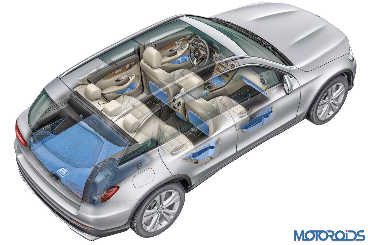 A high-strength safety passenger compartment forms the core of the GLC’s safety credentials. It is surrounded by specifically designed and field-tested deformation zones, which ensure maximum safety for the occupants by virtue of optimised force paths and a combination of die-cast aluminium components and ultra-high-strength materials.