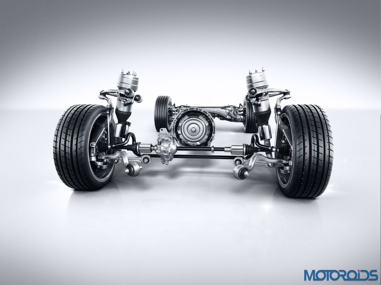 The optional AIR BODY CONTROL full-support multi-chamber air suspension features spring elements in lightweight yet robust glass-fibre-reinforced plastic, which reduce the system weight in comparison to conventional air suspensions.