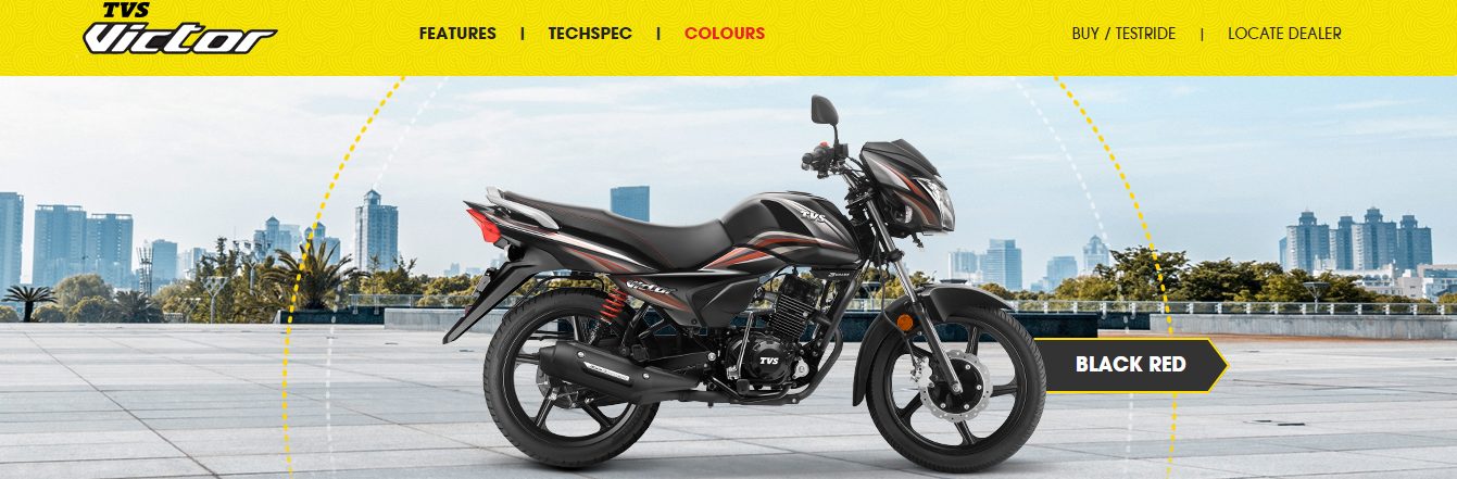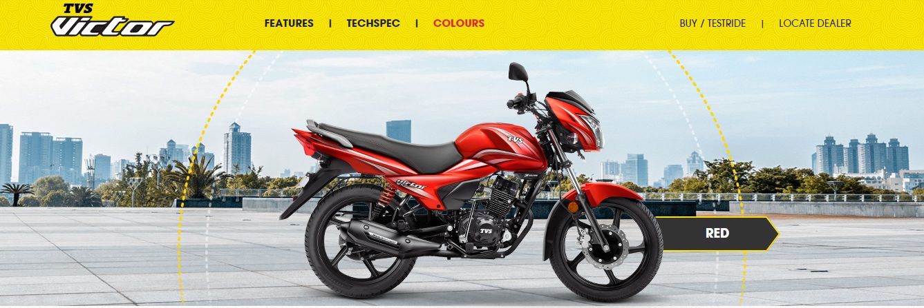 TVS Victor will be available with both Disc and Drum options and in six impressive colours with attractive contrasting graphics including Red, Black Red, Black Silver, Grey, Silver& Blue.