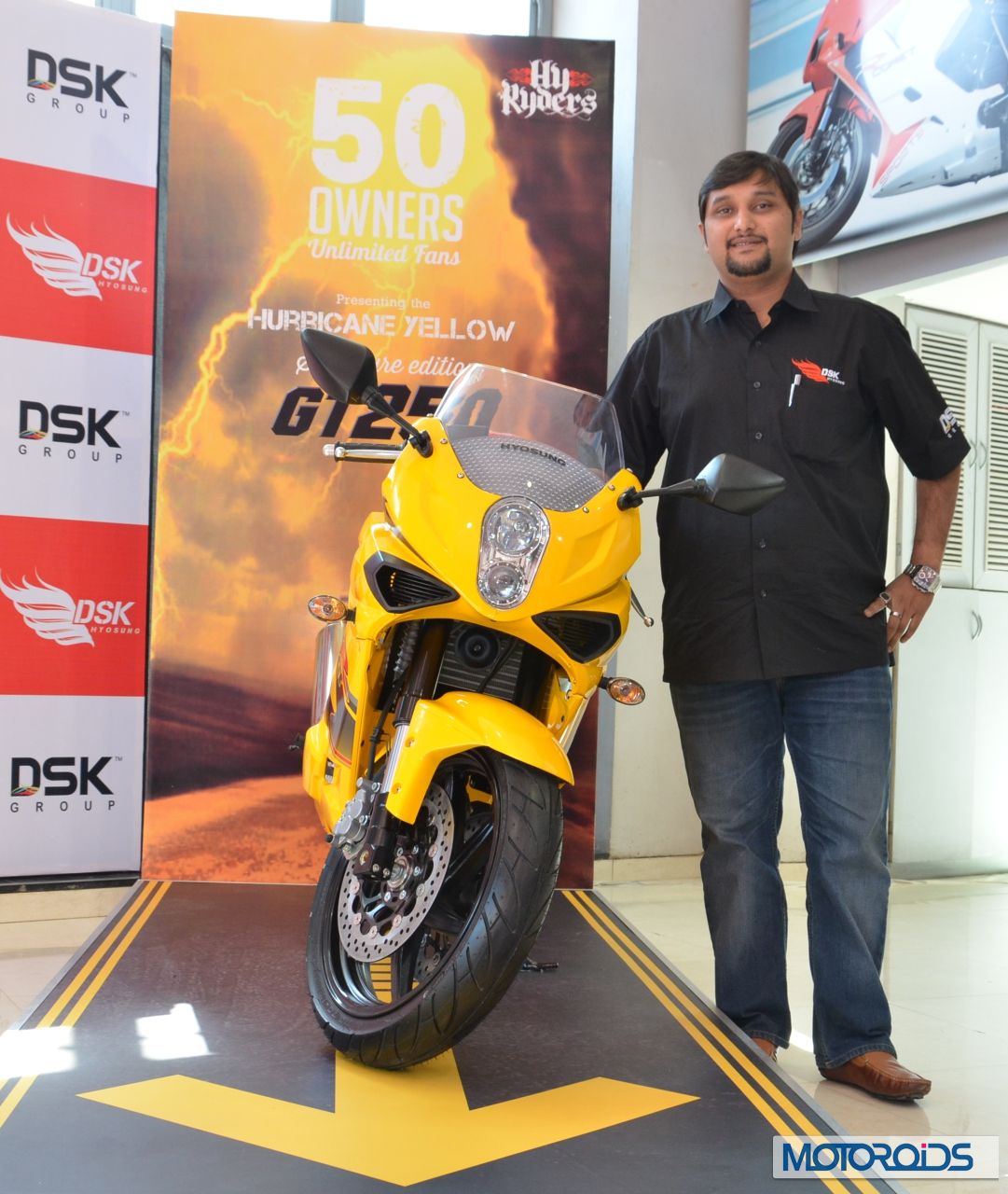 Pune, 13th December, 2013: Marking the 1st anniversary celebrations of their owners club HY Ryders, DSK Hyosung today launched their Signature Edition GT250 R LE in an eye catching hurricane yellow. This superbike was unveiled by Mr. Shirish Kulkarni, Chairman, DSK Motowheels.