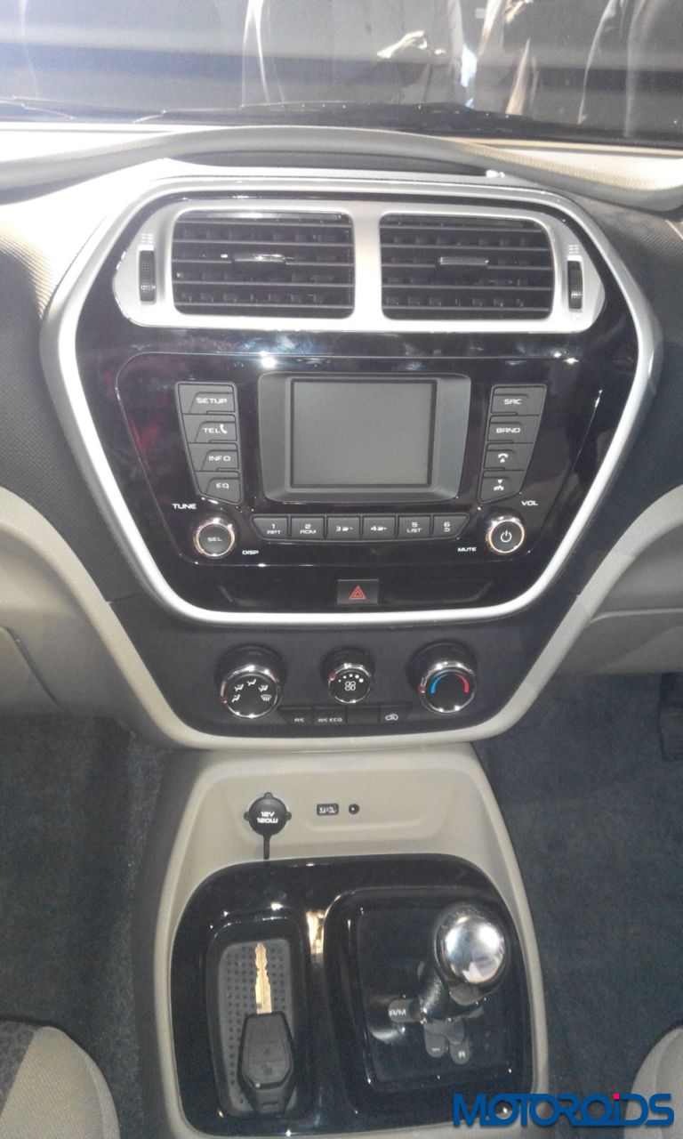 Piano-black centre fascia and a hexagon-shaped center bezel holds the infotainment system comprising 2-DIN Audio, Bluetooth, USB & AUX