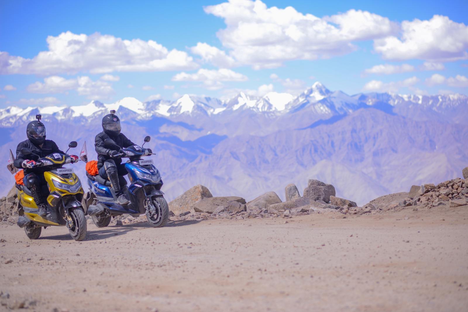 At the Khardung La pass, the e-scooter and the riders were greeted by Managing Director and Chairperson of Okinawa.
