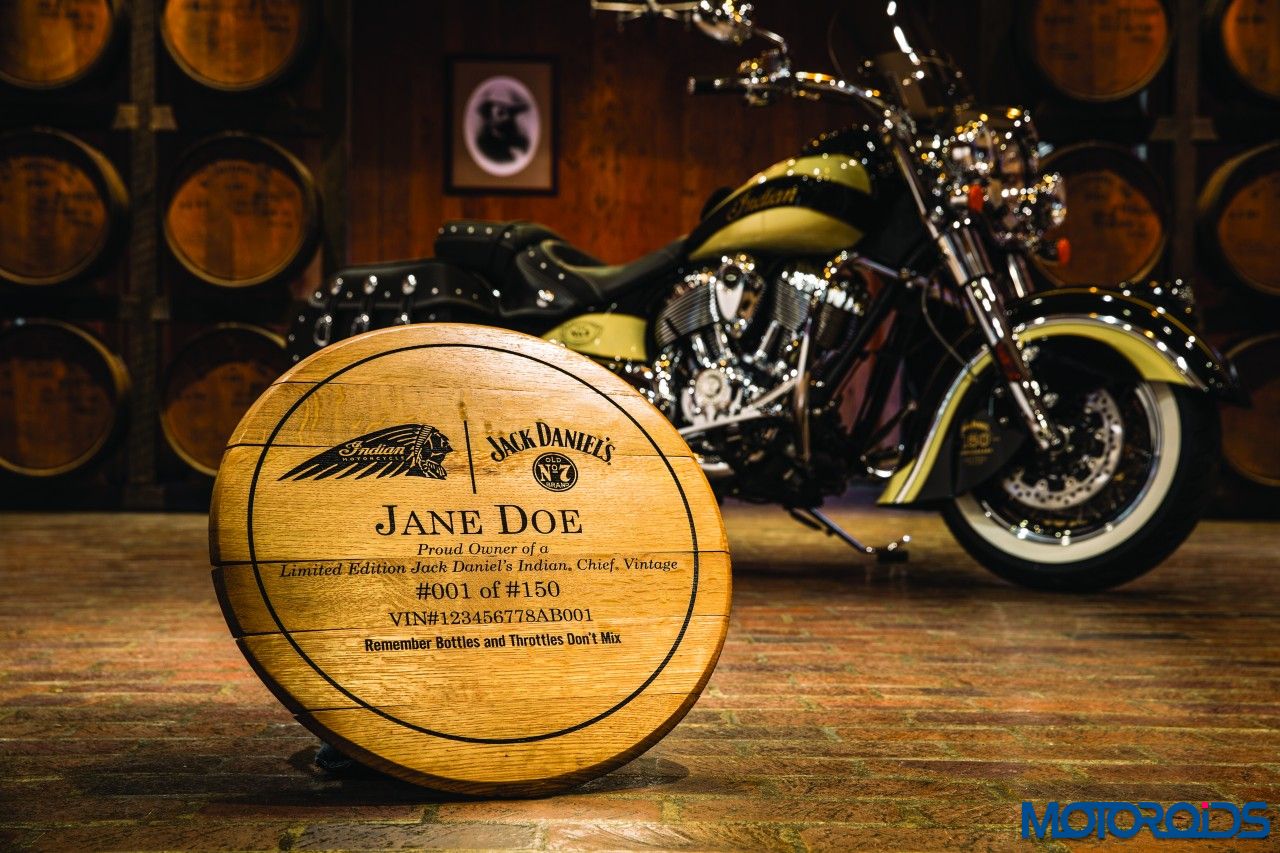 Created to celebrate the 150th anniversary of the Jack Daniel distillery, each model will be produced in limited numbers, not more than 150 to be precise. The first of the limited edition series, an Indian Chief Vintage that was a custom painted prototype built by Klock Werks Kustom Cycles, would go under the hammer.