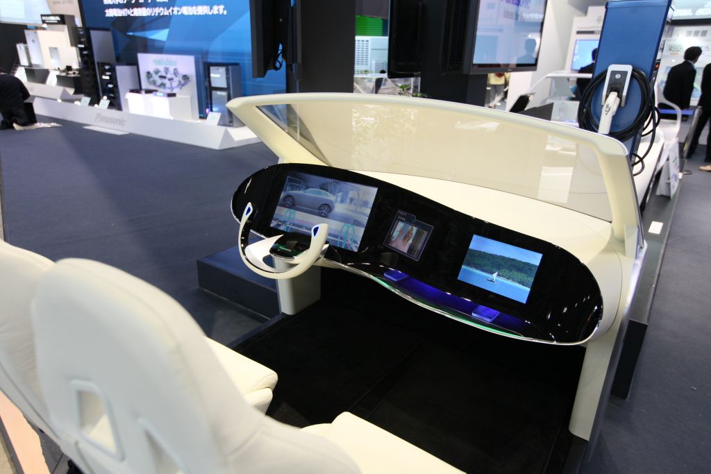 In addition to the larger, reconfigurable console and instrument cluster screens, a head up display has been developed for the eCockpit. Panasonic’s proprietary optical technology from camera and projection systems allowed the company to offer nearly double the image size of traditional automotive head up displays. The increased size allows the most relevant information to be in front of the driver to ensure they keep their hands on the wheel. For example, incoming call control has been added to the head up display via steering wheel controls.