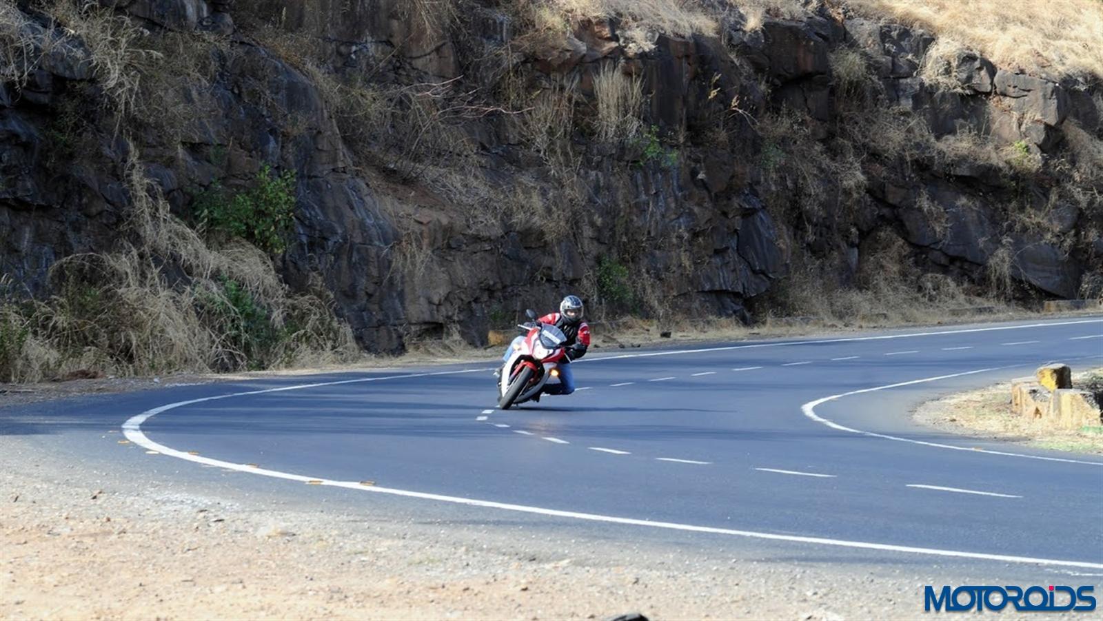 And again back to the blazing ride. The CBR650F loves devouring the twisties. Around the bends this middleweight Honda feels incredibly light and easy to lean from side to side. The soft-ish suspension offers great comfort without affecting the handling. The Dunlop Sportmax tyres at both ends are aimed at sports touring and not track oriented performance. The tyres are reliable and grippy, and tend to break traction only when pushed to the absolute limit.