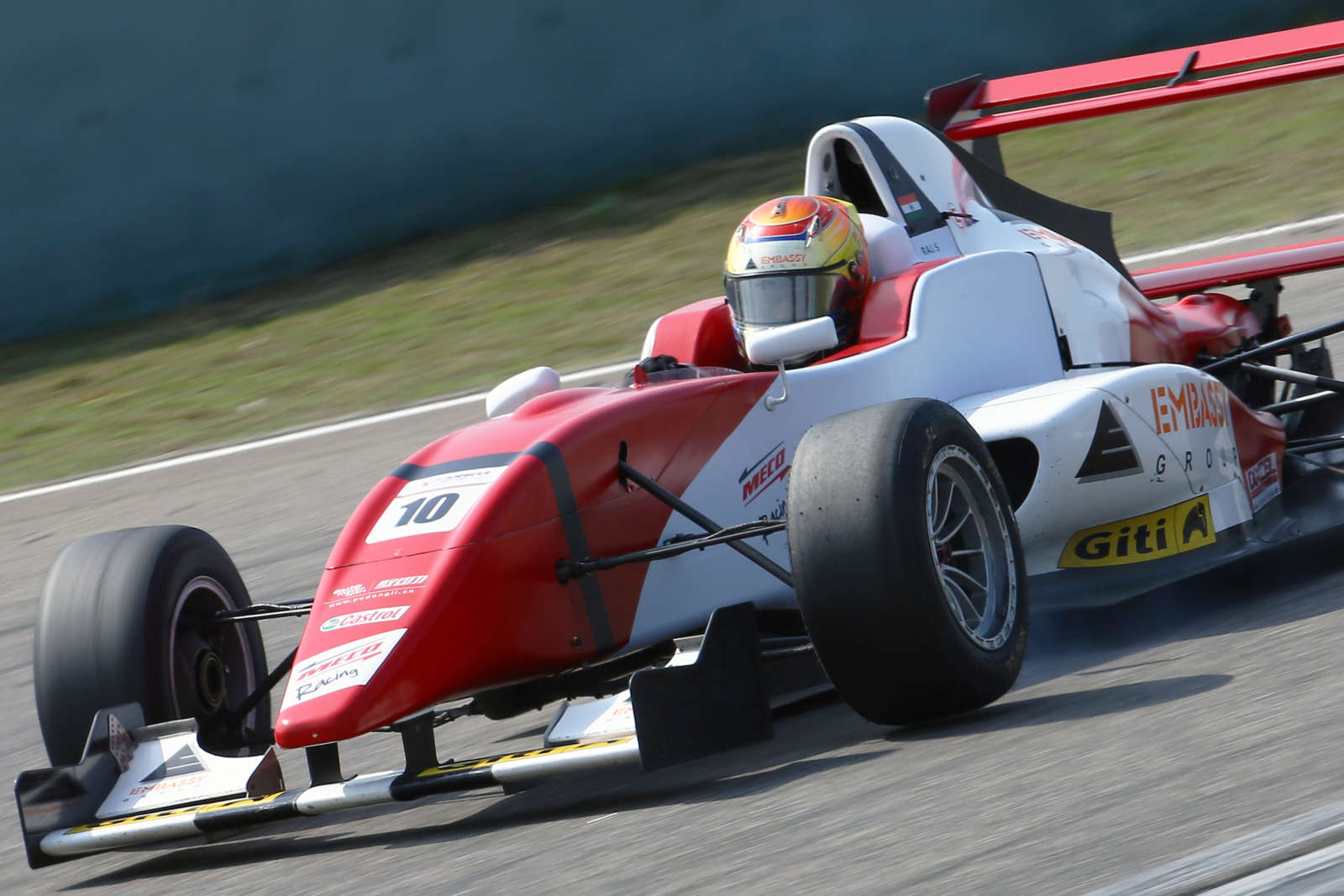 Earlier in the week, Raj started the proceedings on a solid note as he seemed to adapt to the undulating surface well, topping the open test session on Friday. “It is a really demanding layout, it doesn’t really have too many long straights where you can take a break – you’re always busy and the cambered corners give a very different sensation of grip”, said Raj after his first impressions of the circuit. But as the track gripped up in the following sessions, the setup changes didn’t seem to bring in the expected gains and come qualifying, Raj fell short of a few tenths in lap time. With the Formula Masters grid being exceptionally tight, he qualified seventh on the grid for race one and fourth for the third race of the weekend. “We were still figuring out how to make up those final tenths and we managed to make a step forward from the first to the second qualifying session, so I was feeling positive for the race even though I was starting way back in seventh”, Raj clarified. As the lights went out for the rain-soaked race one, Raj immediately set out to climb his way up the grid, coming through the pack despite exceptionally low visibility as cars in front bunched up and threw up a blinding spray. After pulling off some brave passes, he eventually finished third while setting the fastest lap of the race. Raj’s best lap was a 1:45.545s was seven-tenths quicker than the second fastest lap of the race. The fastest lap under torrid conditions also earned Raj pole position for race two.