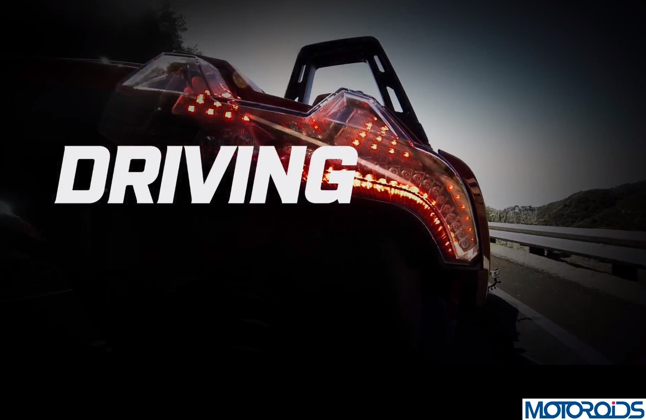 The cockpit looks simple yet modern and assumptions of a CVT on the Slingshot have been put to rest- thanks to the shift stick clearly visible in the video. Also icons of Traction and Stability Control shows the set of driver aid electronics with a switchable function for a more unplugged feel while rushing around a track.