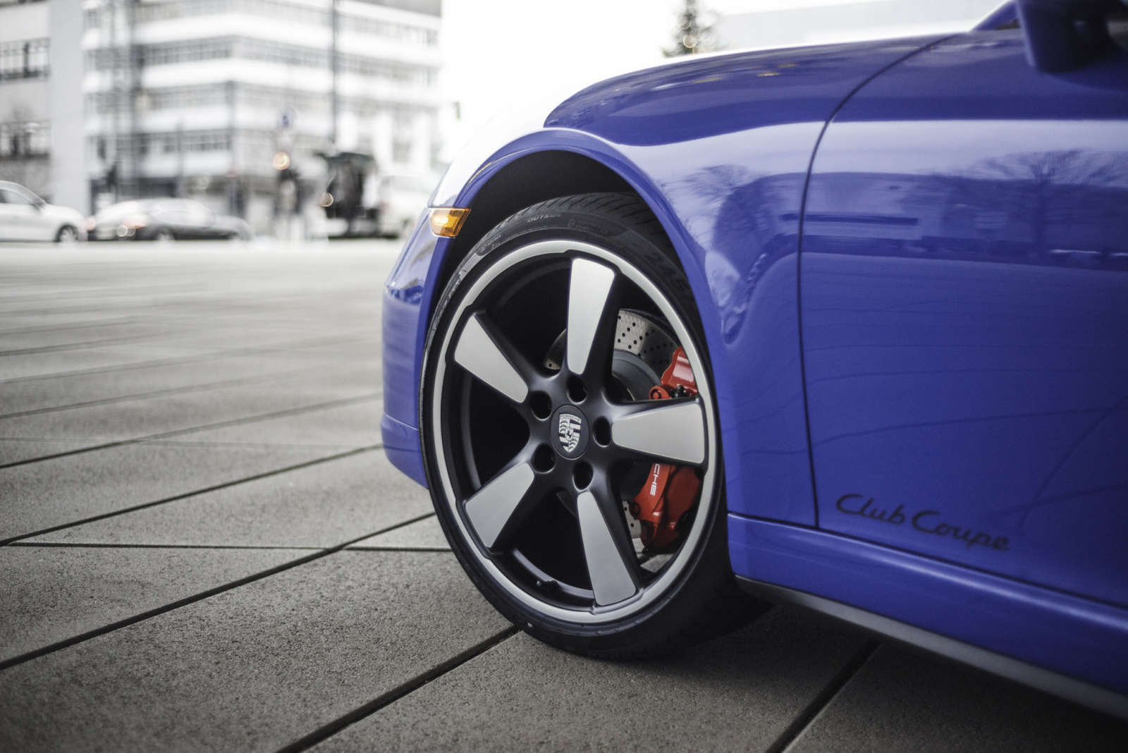 An Extended Club Coupe Package is available as a unique option. It consists of a vehicle key painted in “Club Blau,” a leather key pouch and leather-edged floor mats, both with two-tone stitching in Carmine Red and Blue. An individual personalized indoor car cover is also available as an option. Porsche Active Suspension Management (PASM), incorporating adaptive dampers and a 10 mm lower ride, and Porsche Torque Vectoring (PTV), as well as the Sport Chrono Package with dynamic engine mounts, contributes to the car’s optimal handling characteristics.