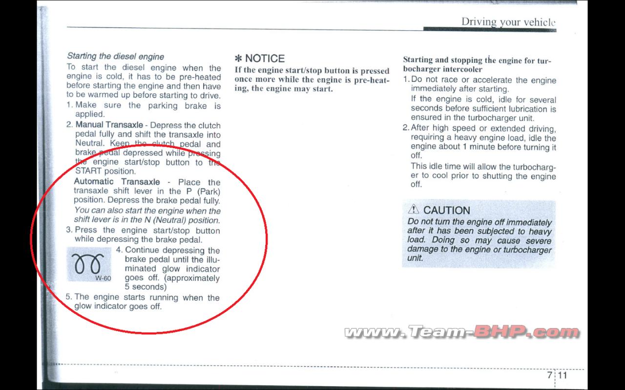 In the owner’s manual, there is a specific section which describes the procedure to start a diesel powered automatic variant of the car. The section talks about the position of the drive selector lever, the pedals to press and the procedures to follow before the diesel engine is pre-heated and primed for ignition.