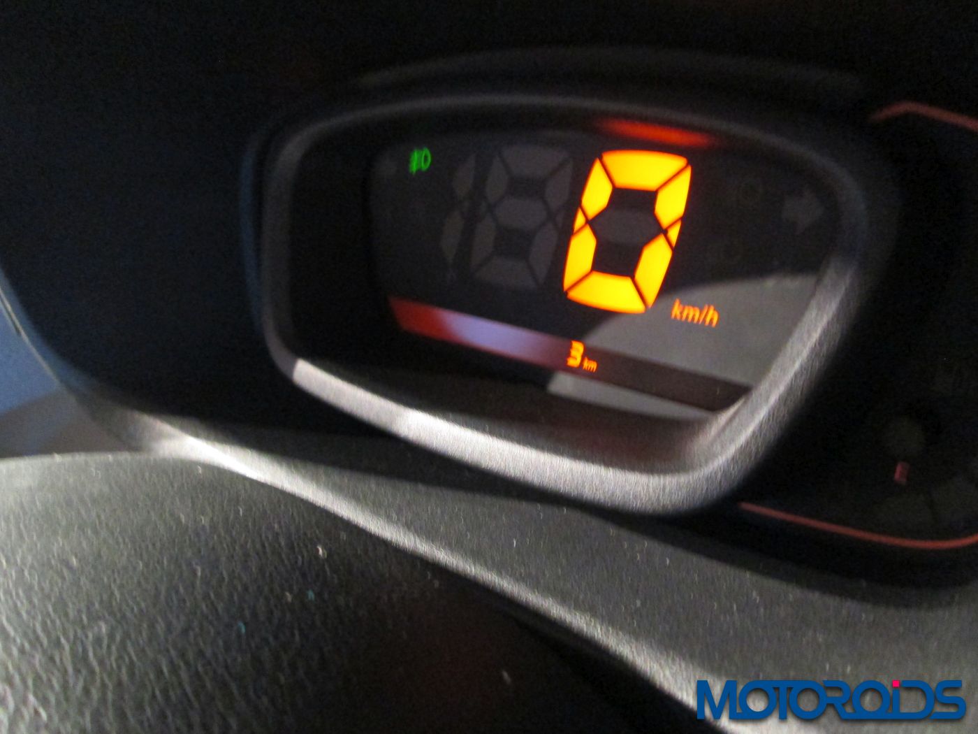 The three spoke steering is chunky to hold.