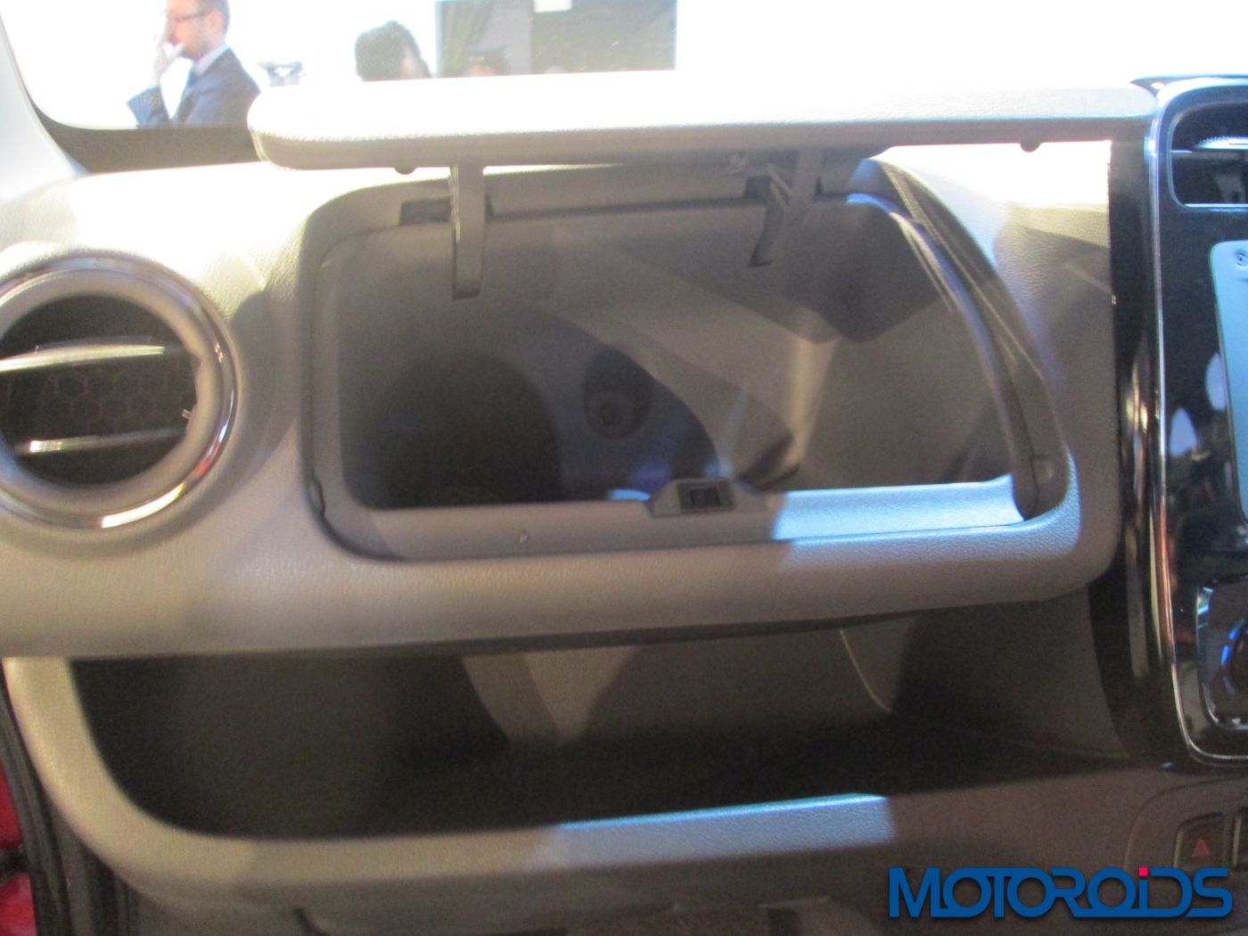 Two glove boxes and another storage space in between.