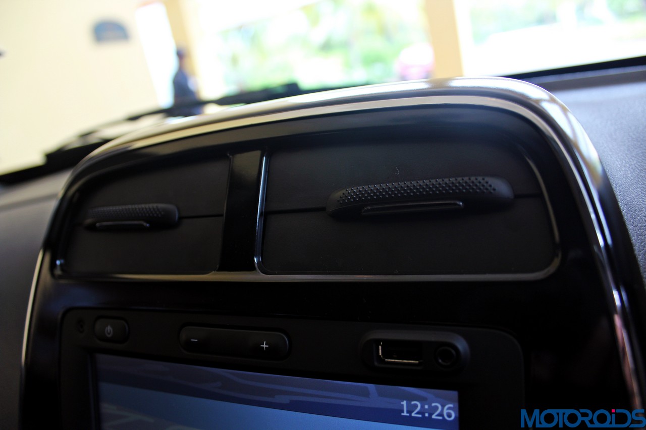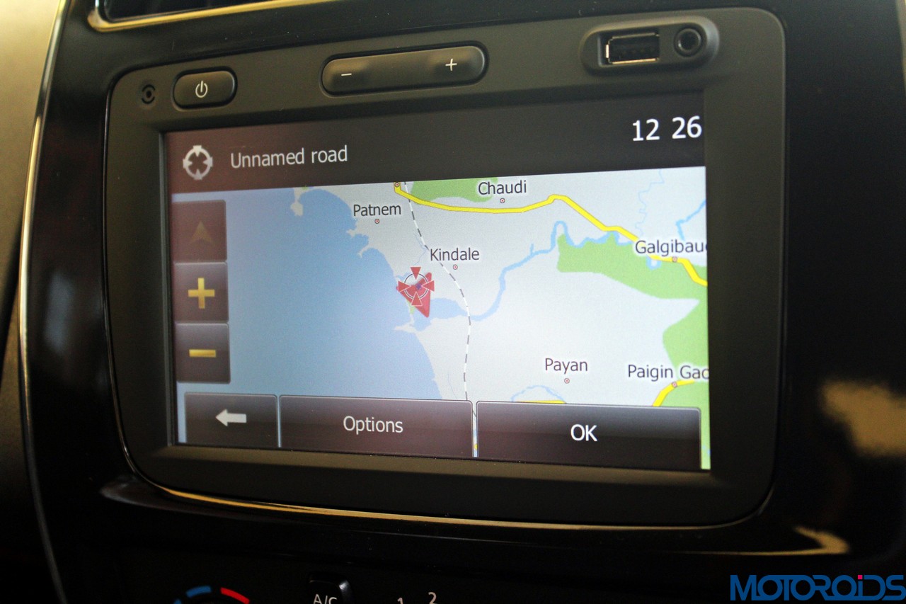 The interiors are roomy and spacious, and none of the claustrophobia felt in, say, the Alto is felt here. Furthermore, it doesn’t feel bare and built to a cost as well, with a proper roof lining, soft touch materials, complimented by up market appointments. The center console trimmed in classy piano black finish along with subtle chrome bordering. But what it hosts is more appealing – a seven-inch (18 cm) touch-screen equipped Media-Nav multimedia/navigation system; a feature unheard of in its class. For a budget car, the system works like a dream, and offers Bluetooth, iPhone and smart phone connectivity, along with navigation, USB charging, audio playback via Aux-in, pen drive and phone.