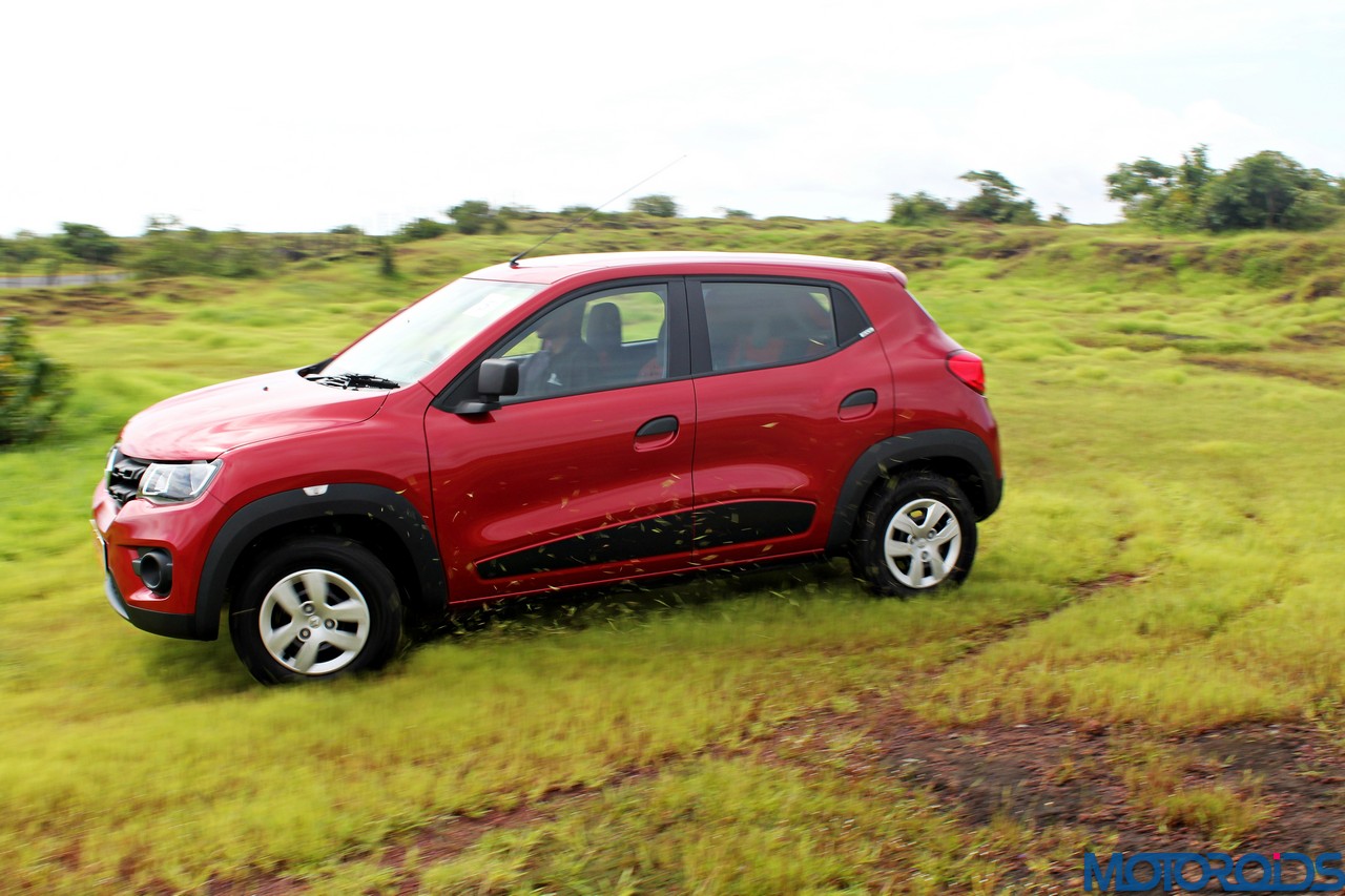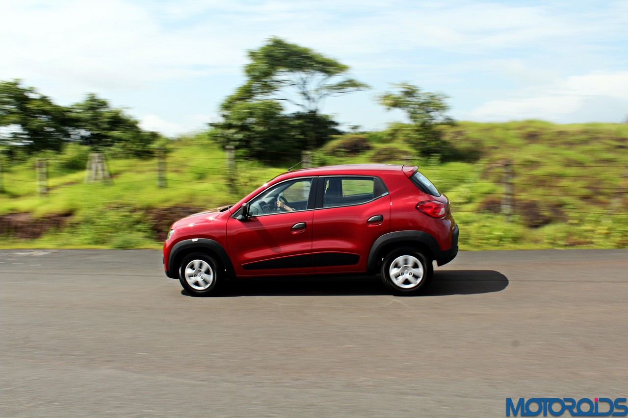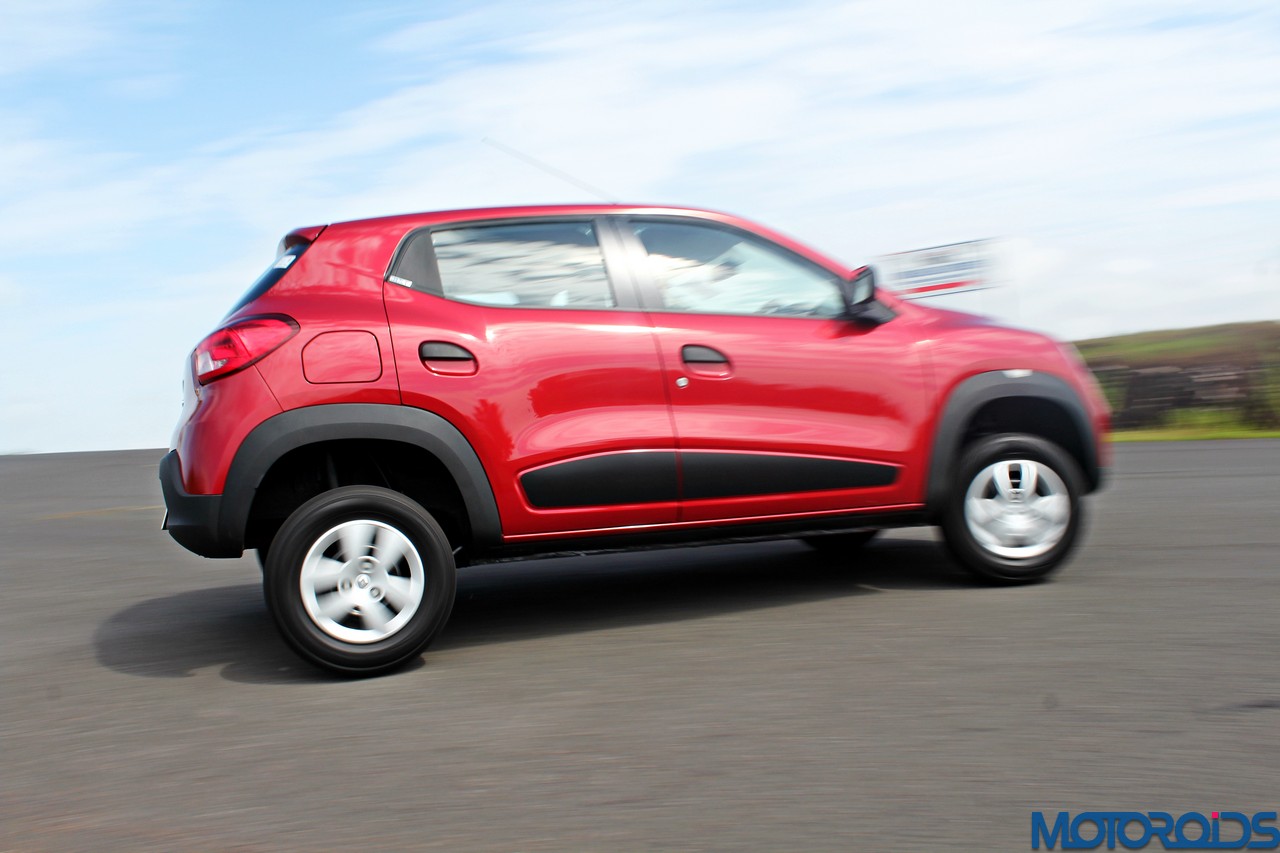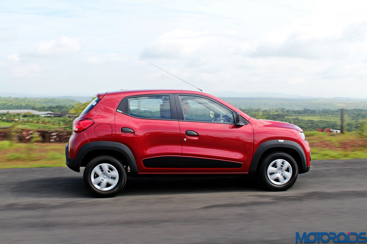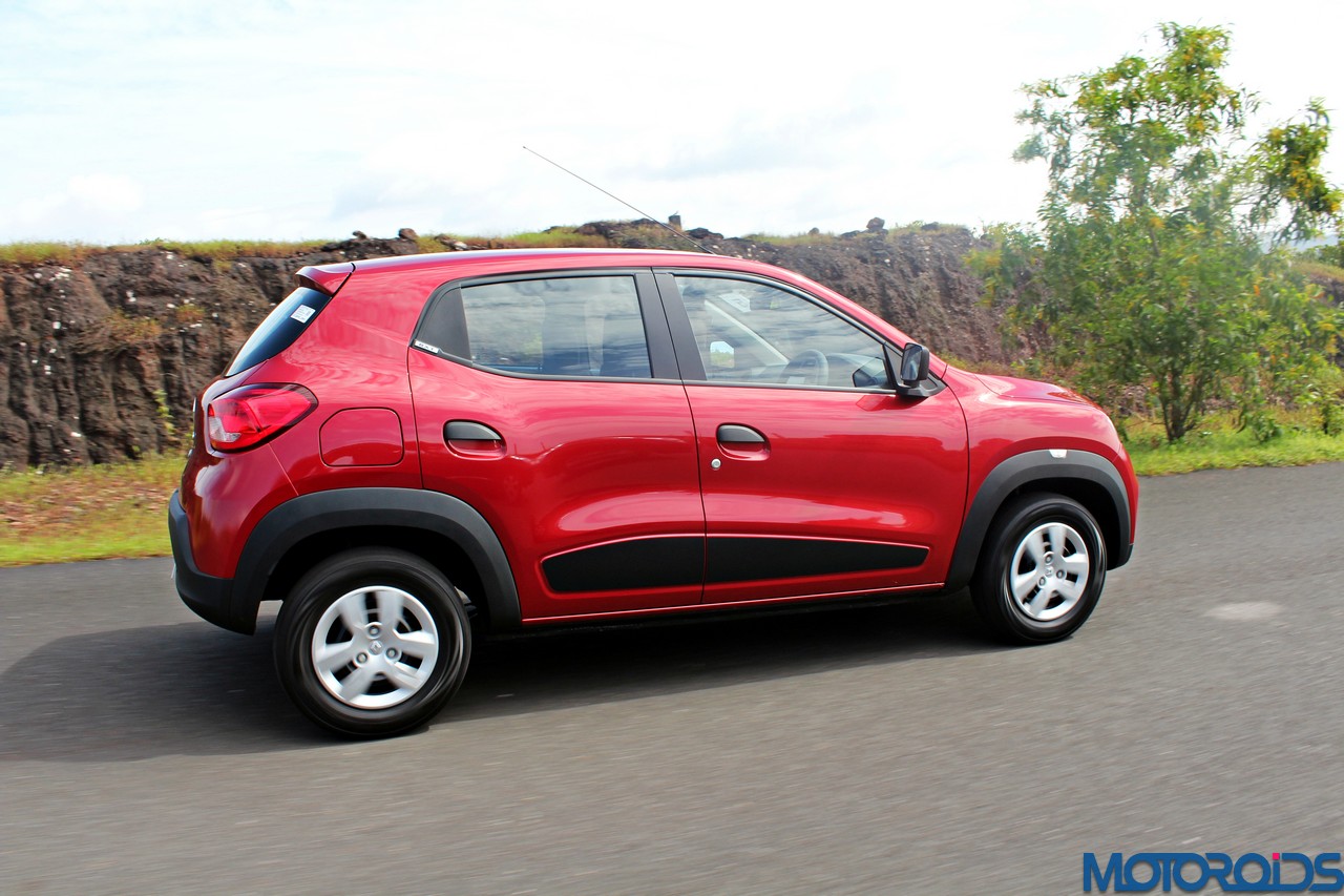 The sides are well sculpted, with broad, muscled up fenders that accentuate the width of the vehicle, adding to the “SUV-inspired” propaganda. The wheel arches are mildly squared off, and taped with cladding that make the Kwid look like it’d eat a compact SUV for breakfast. Further accentuating the SUV experience are the “side finishers” or some cladding for the doors.