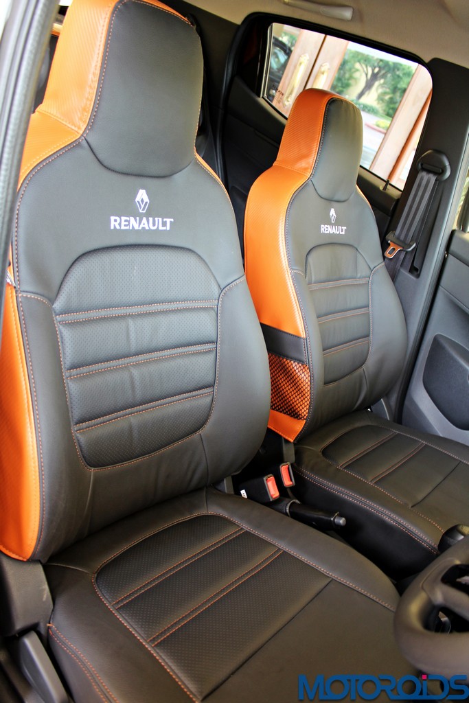 The front seats are basic, yet supportive, but could have done with a bit more bolstering, but that’s asking a bit too much, considering it’d eat into interior space. A front shoulder room of 1250 mm is worth praising, apart from, of course, class leading (Note : Upholstery shown in images above and below are a part of one of the six customization packs – more on that in a separate article).