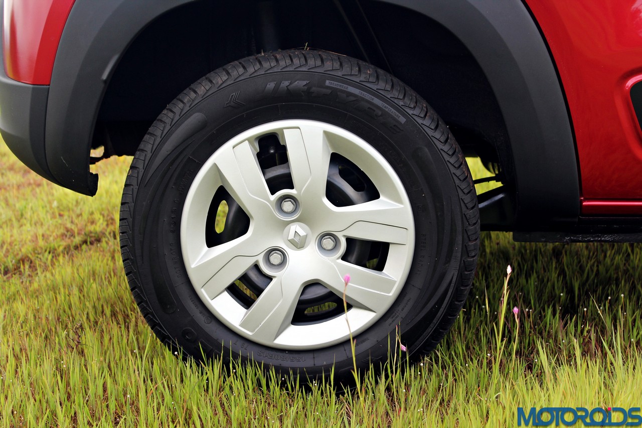 The side indicators are neatly integrated into the front wheel arch, rather than making a hole in the bodywork, or sticking them on the door mirror caps. Speaking of arches, the ones on the Kwid are huge. They look hungry for more, especially with the standard (read skinny) 155/80 tires wrapped around 13-inch steel rims.