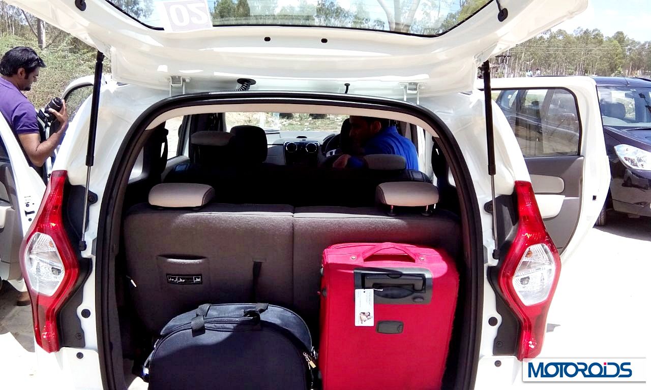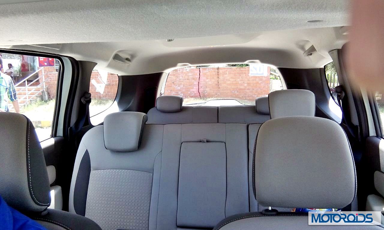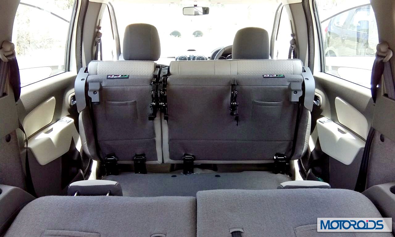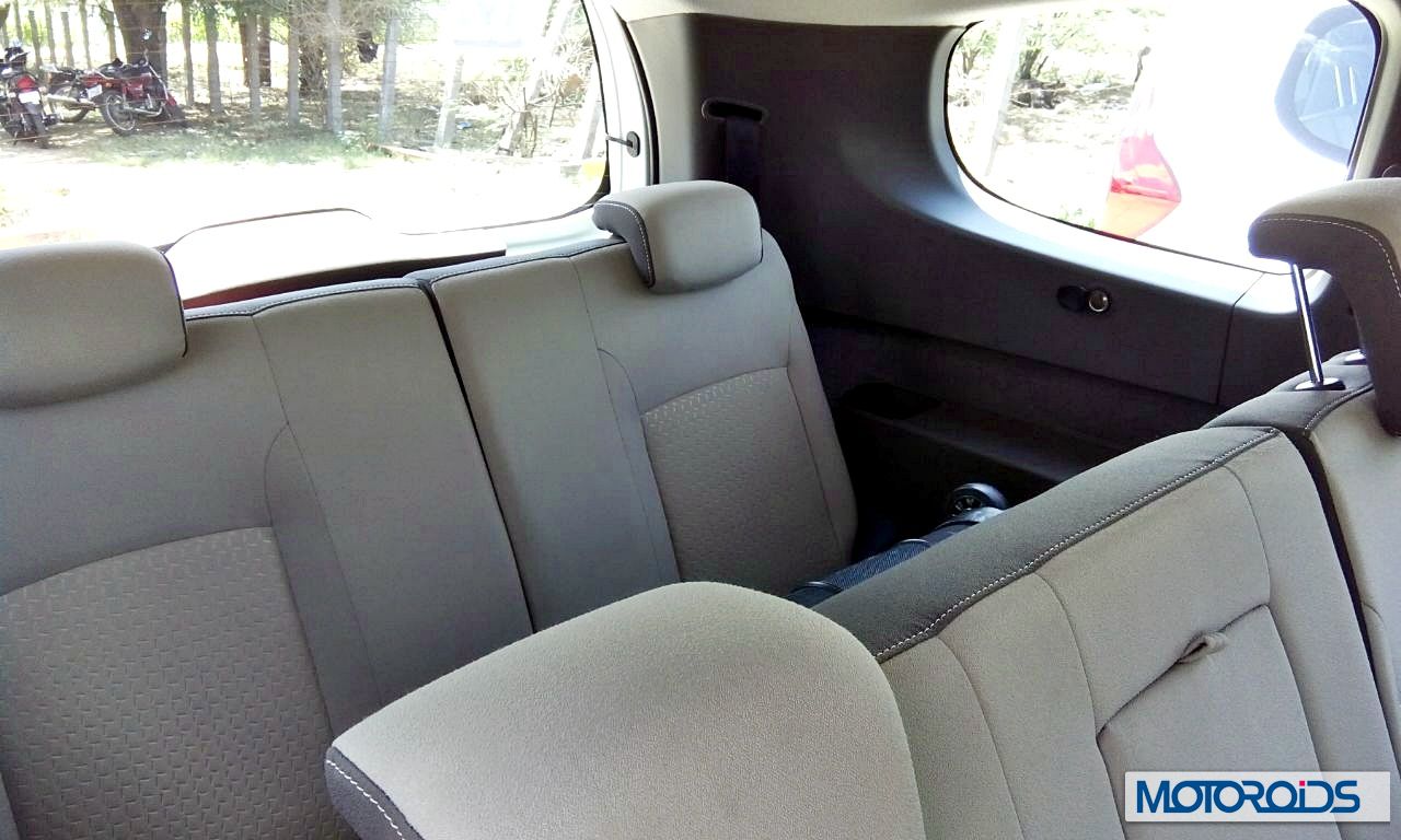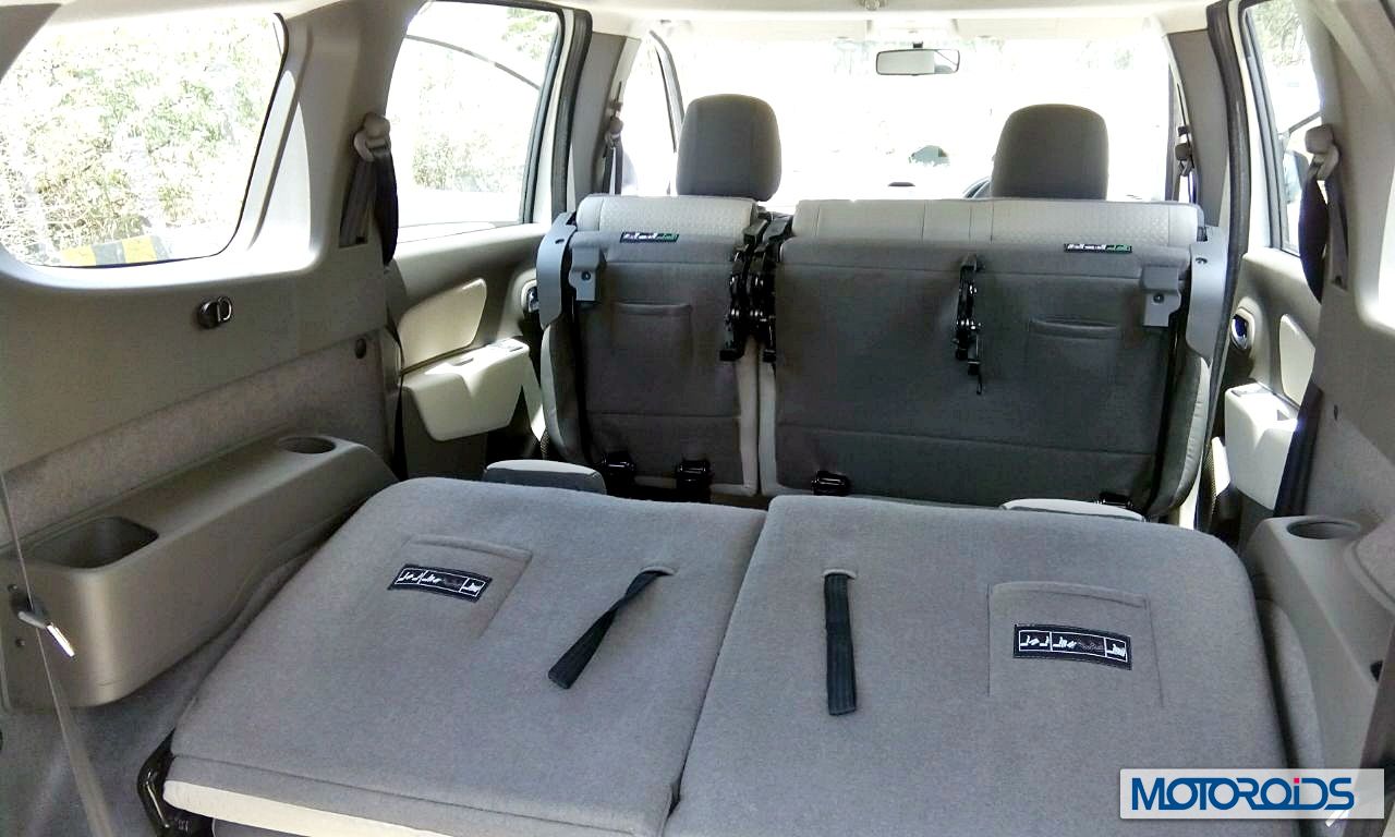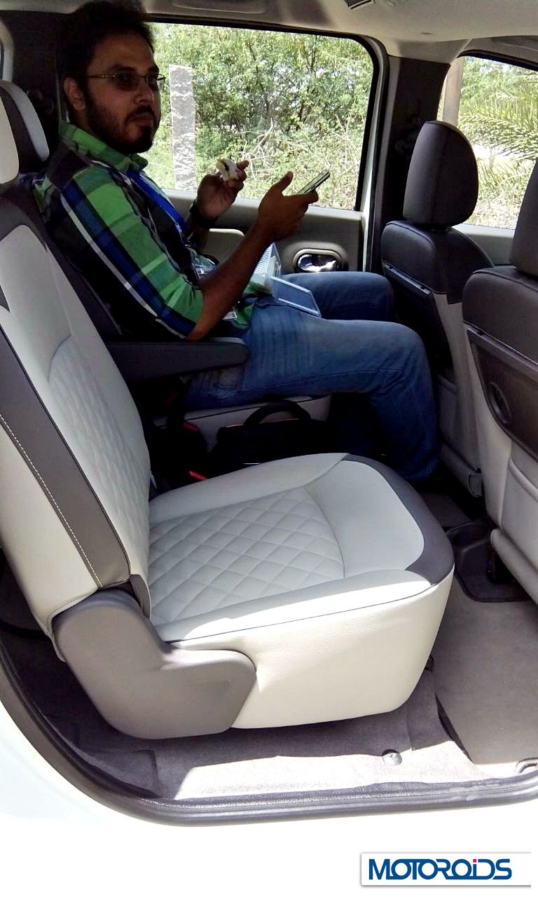 Third row of seats gets two cup-holders on either side and adjustable head-rests along with its own A/C vents. Renault wants us to believe the seat in the picture above can accommodate three adults. We would disagree, though it’s still better than what the others in the segment have to offer.