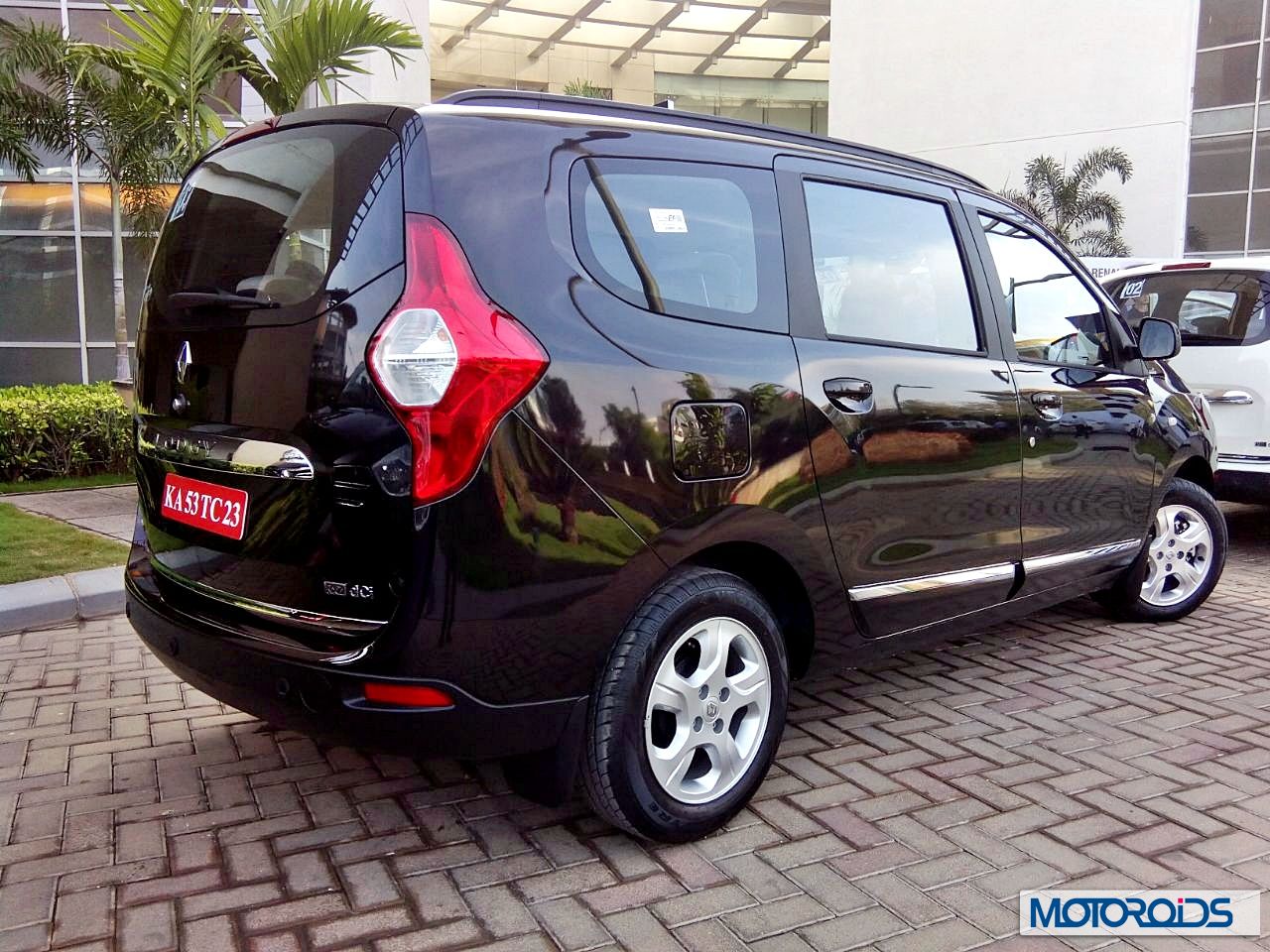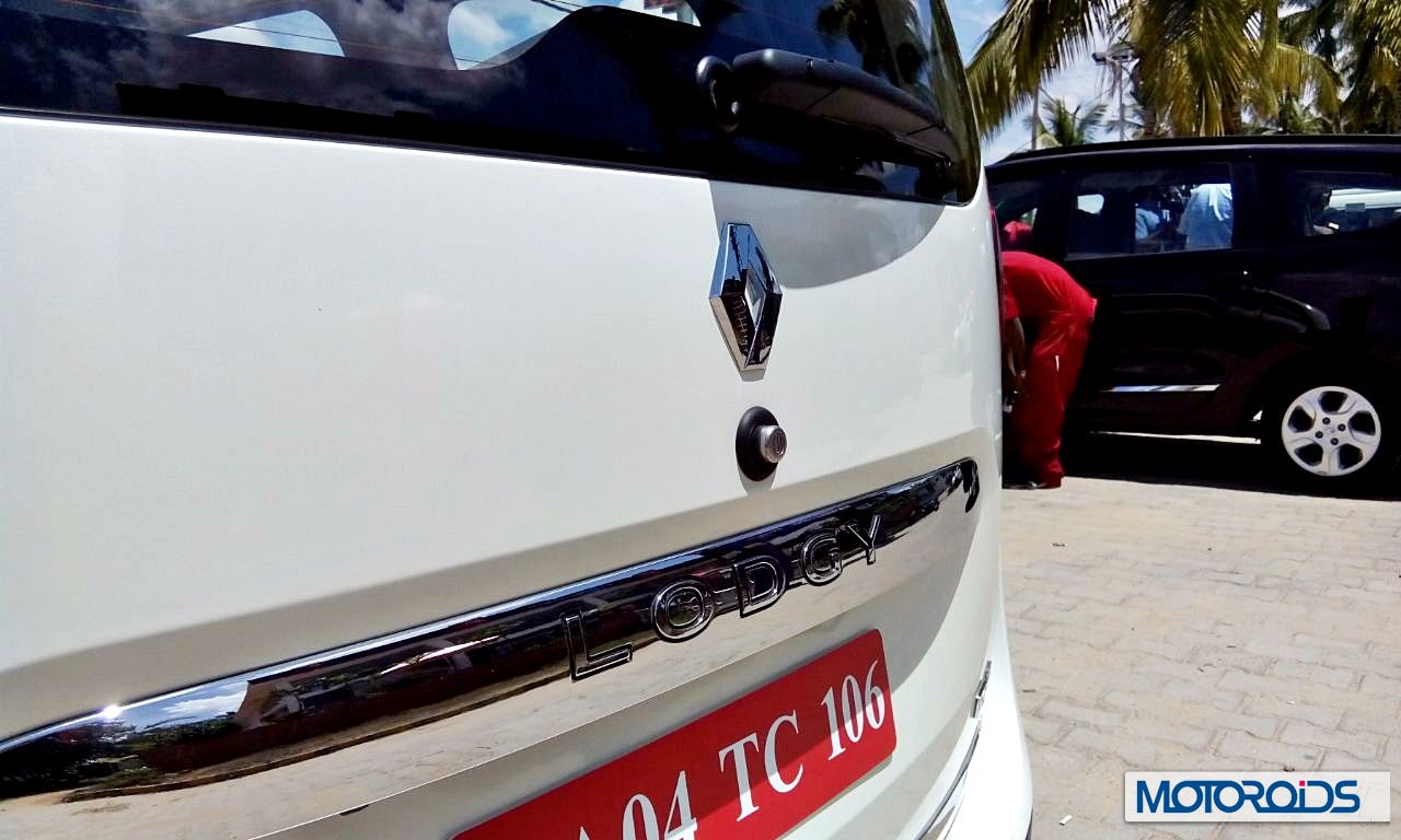 The Lodgy looks rather smart in that white shade. The size of the third window should give you an estimate of how spacious the car is from the inside. Check out the body coloured door handles, two-tone ORVMs and contrasting under-cladding for the bumper. We can also see parking sensors installed on the rear bumper.