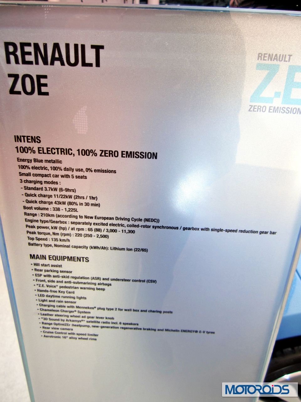Renault showcased its Zoe electric car at the 2014 Auto Expo. The Zoe joins the Fluence saloon, Kangoo van and Twizy to become the fourth all-electric car in Renault’s line-up internationally. The Zoe also features Renault’s new brand identity, including the new front face.