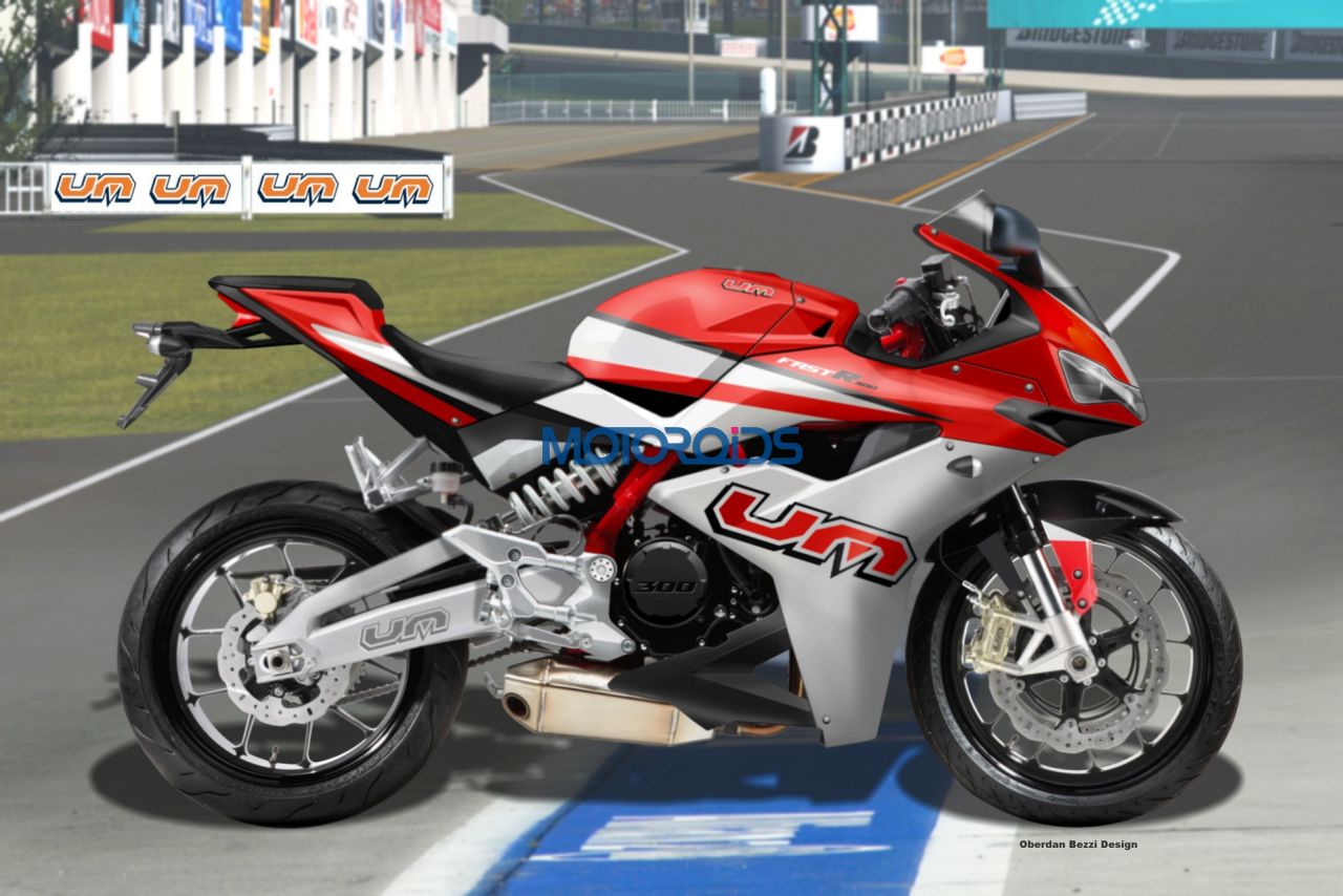 Ace render artist Oberdan Bezzi sends us these images, which show renders of an imaginary 300cc, fully faired UM sports bike. Bezzi reckons that this will be UM’s halo motorcycle, something that it would show to the international press as a prototype, showcasing its technological prowess. He reckons that it will foreshadow the first model of a “family” of premium motorcycles that will be introduced in all emerging markets and also in Europe.