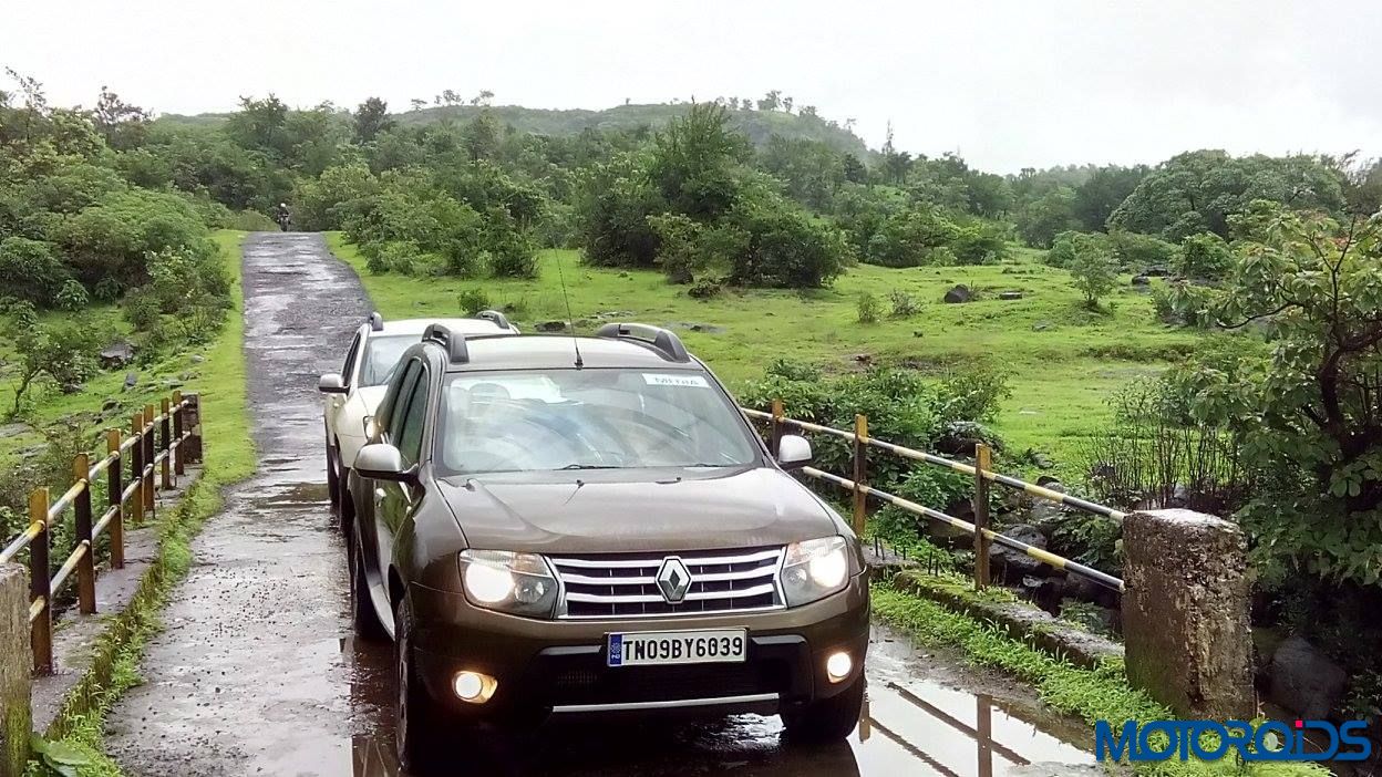 As stones ricocheted off the under-body, and the windscreen wipers struggled with the heavy rain, the Duster tackled the slushy, rough roads with grace, and pace. We were en route to Kolad from Aamby Valley, negotiating 110 Km of rain harassed state highways, strewn with loose gravel, standing water and slush. Lush green meadows strewn with shiny rocks gave way to cloud hugging mountains in the distance, as the “Gang of Dusters” made quick headway towards Kolad, disrupting the usual peace. Welcome to the Great Western Adventure.