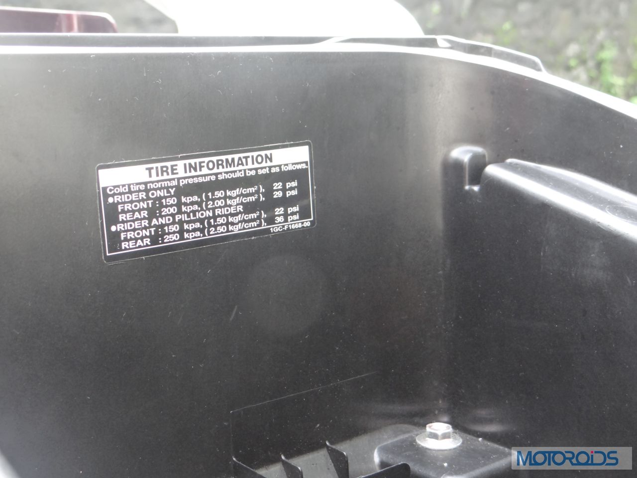 The tyre pressure chart should have been placed at a place where it was easily visible