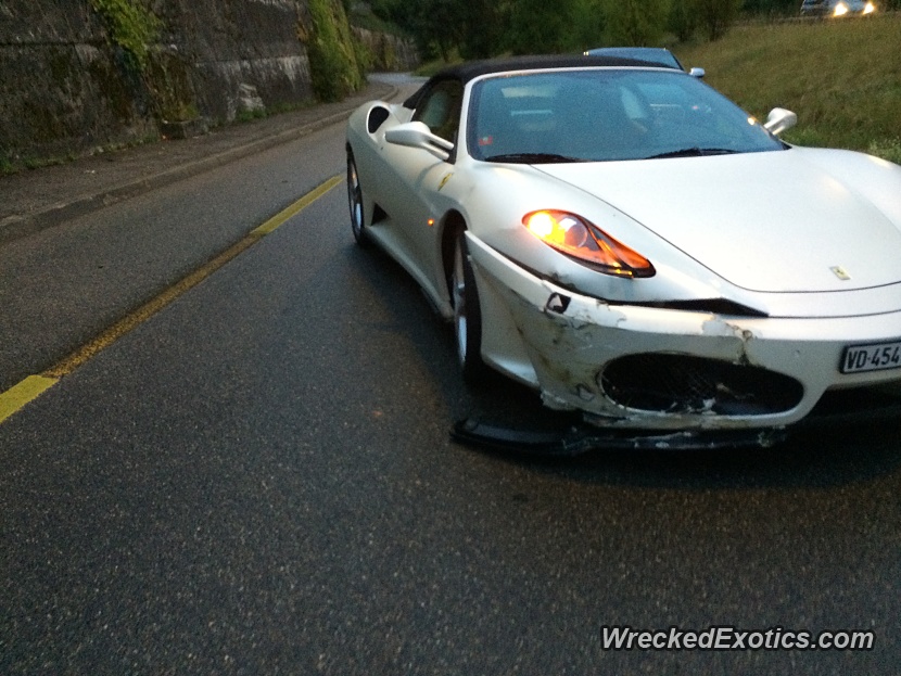 These kids tend to abuse the huge power these supercars have and end up damaging them. One such incident took place in Geneva, Switzerland where a 22-year-old kid lost control of his Ferrari while speeding on wet roads. The vehicle lost control and swerved into a ditch before hitting and bouncing off a wall. The white convertible Ferrari does not seem to show much signs damage except for a broken bumper. However, we all know that it would cost a bomb to take off a dent from a Ferrari.