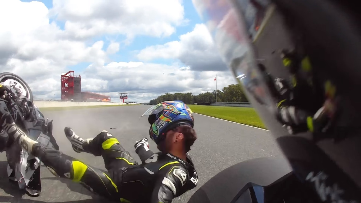 Luiz Franchi is a lucky man. He recently escaped a high-speed crash on the race track as his helmet came off right after the first impact. The incident took place at the New Jersey Motorsports Park (NJMP) during American Sportbike Racing (ASRA) SuperStock Race on September 3, 2017 when Jeremy Whitehurst suddenly chopped the throttle after the finish line. Whitehurst took responsibility of what happened at the race track.
