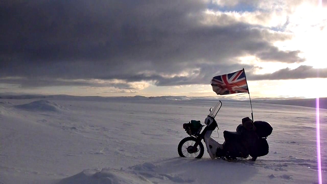 Riding Solo on his trusty C90 mounted with a Union Jack (flag of the United Kingdom), camera equipment and camping gear, Ed says “To show the world you don’t need a BMW R1200GS to travel. As to why a moped like the C90 for an adventure of this extent, Ed states on his website that “I just can’t seem to kill the thing. I constantly abuse the poor thing, I ride her as fast as she’ll go down muddy lanes and when things wrong, we leave the road enter the ditch or hedge and with any luck smash our way out legs flailing and continue the journey. There’s no worrying about broken fairings, bent forks or scratched paint. You just keep on riding.”
