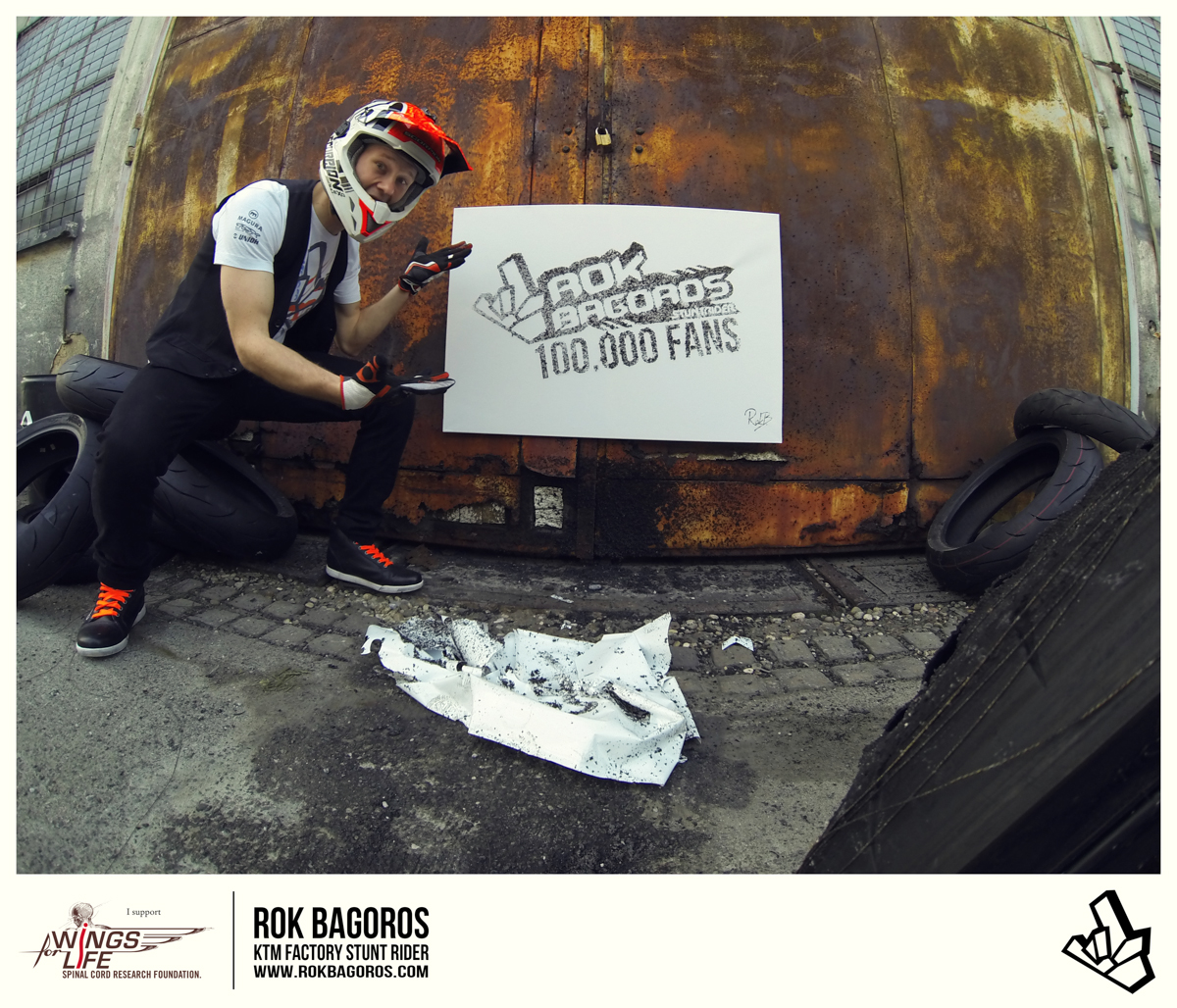 On this occasion, Rok Bagoros will sell his RokON! 100k fans rubber picture on ebay. The earnings from the sale will be donated to the WINGS FOR LIFE foundation.