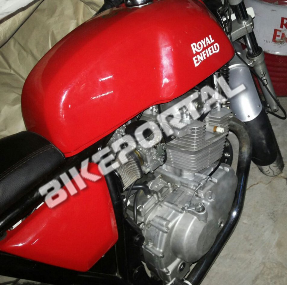 Here is something that would bring a grin on the faces of all Royal Enfield admirers. If these latest set of spy images are to be believed, Royal Enfield may soon come up with an all new engine, the most powerful in its lineup ever. The images here reveal that Royal Enfield may soon bring in an all-new inline twin engine, rumoured to have a capacity of 750cc. As seen in the images, the engine is being tested within the chassis and the bodywork of a Continental GT motorcycle.