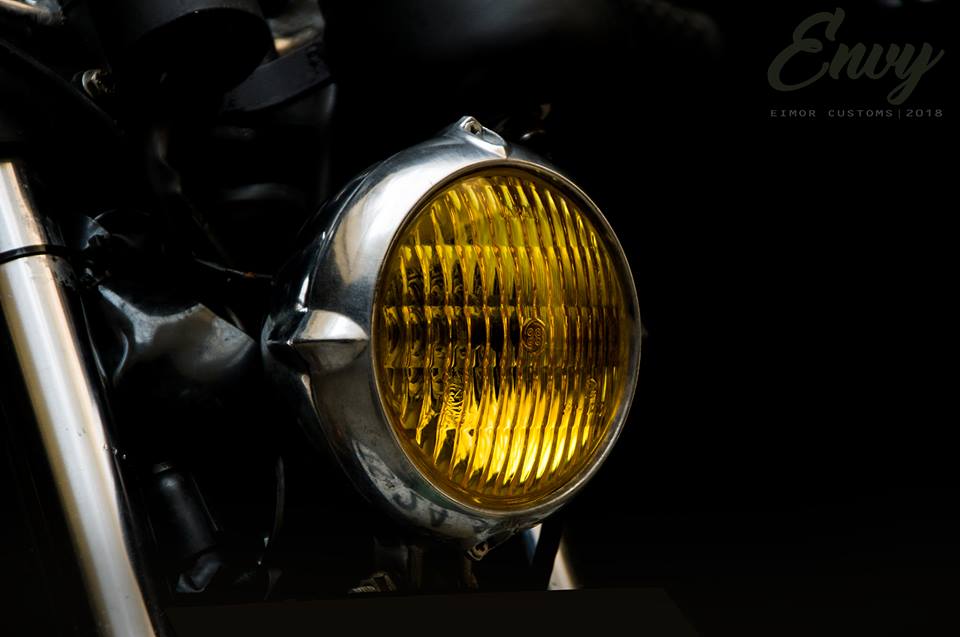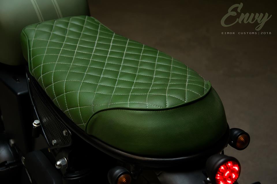 The motorcycle that you see in the images walks a thin line between a café Racer and a scrambler, and it’s called ENVY. The handlebar, for example, are scrambler style units instead of clip-ons which are typically seen on café Racers. It even gets the rugged wire-spoked wheels, wrapped in dual-purpose knobby set of tyres which are usually reserved for scrambler style motorcycles. However, the fuel tank has a typical café racer look, and so does the flat saddle with diamond pattern stitching.