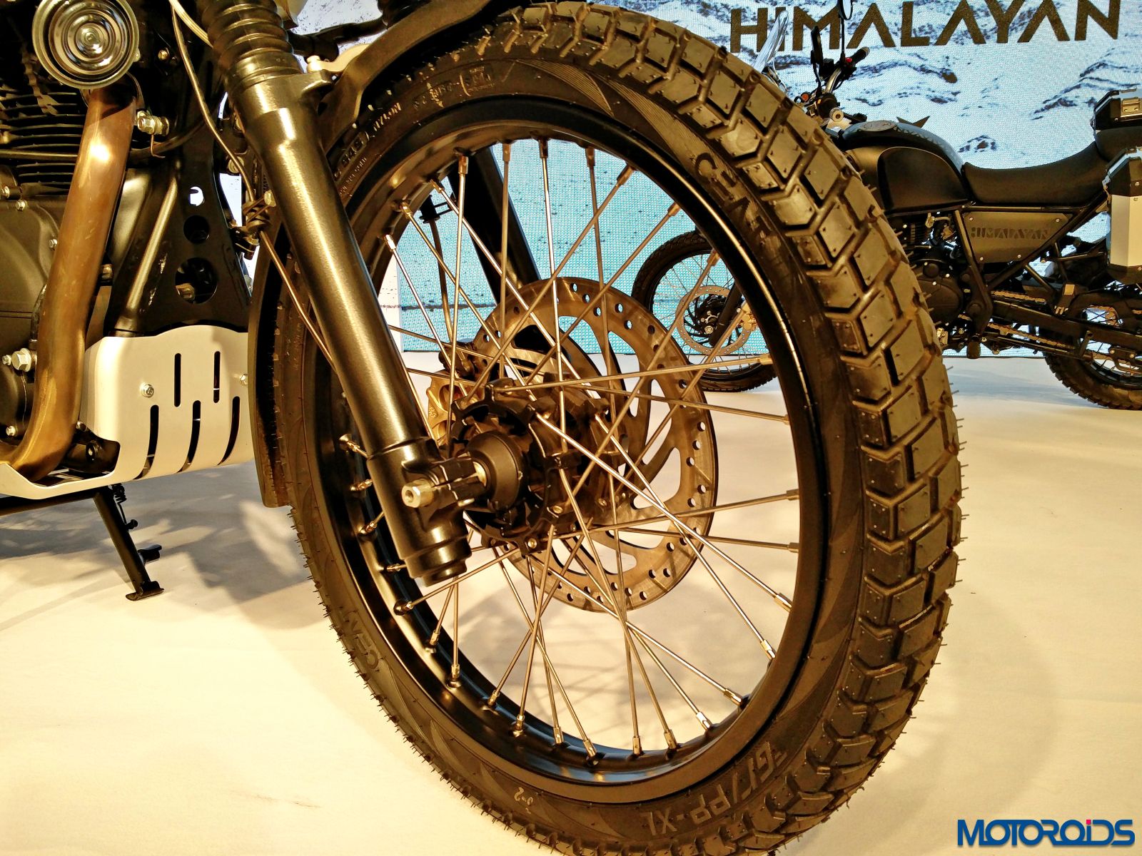 Built on a rugged duplex split cradle frame designed and developed by Harris Performance, the Himalayan is stable and agile in equal parts. A strong mono shock rear suspension with linkage allows for longer travel and delivers a smoother ride experience regardless of terrain. The Himalayan’s 220 mm ground clearance ensures it gobbles up obstacles comfortably be it in the Himalayas, rocky river beds or at stream crossings. An optimal wheel size combination allows for better control while riding over rocks and ruts.