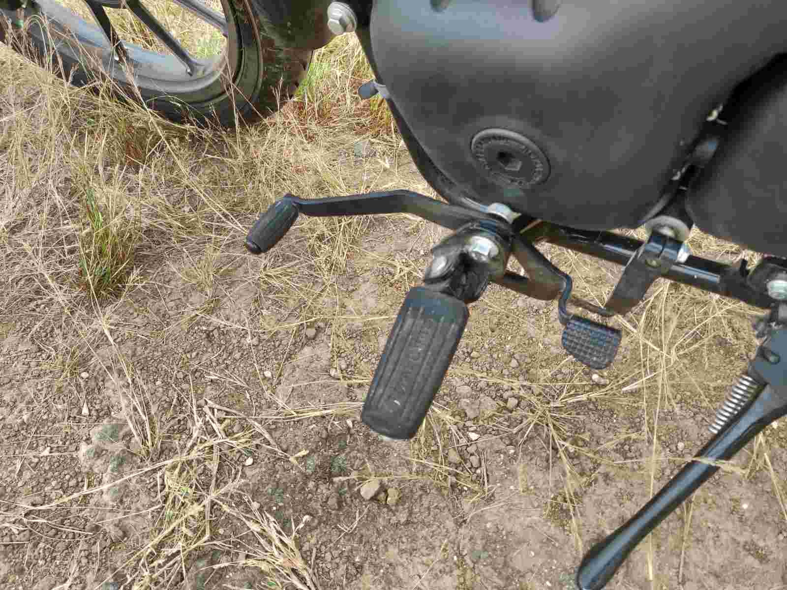 The front tyre measures 100/90 -19, while the one at the back is a 140/70 – 17. Both are tubeless on 10-spoke alloys. The 41mm front forks offer 130mm of travel and the twin rear springs are adjustable for pre-load in six steps. The new headlamp up front is still thankfully lit by halogen and gets an LED ring. It’s performance in the dark is sufficient, however, for a cruiser, could have been better in terms of intensity. The windscreen you see on our test bike is an accessory and does its job well to deflect the wind which is directed towards the rider’s chest. We’re happy to report that the retro-styled mirrors are finished really well and held their position even after multiple high-speed rides. What we’re also happy about is the overall quality of components throughout, including chrome-finished components like the exhaust pipe and the footpegs where the front units are spring-loaded and retract into position when folded.