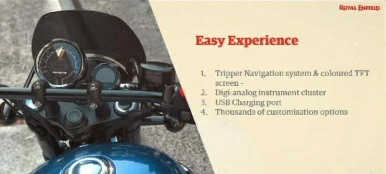 Sitting alongside this dial will be another colour TFT screen to the right which RE calls a Tripper Navigation Display Unit. Pairing with the rider’s smartphone via Bluetooth, it will display turn-by-turn navigation through signage in both day and night modes. The bike will also feature a USB charging port. It is being said that the bike will be launched in the last week of September 2020 and once that happens, we’ll be back with official details about this new motorcycle.