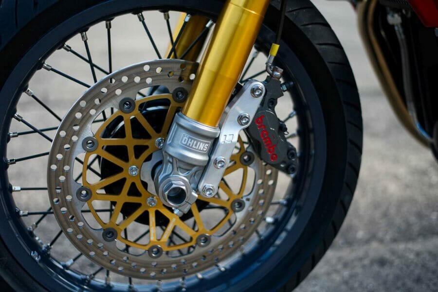 - Front Suspension-Fully adjustable Ohlins Retro43 RWU forks modified by HarrisPerformance