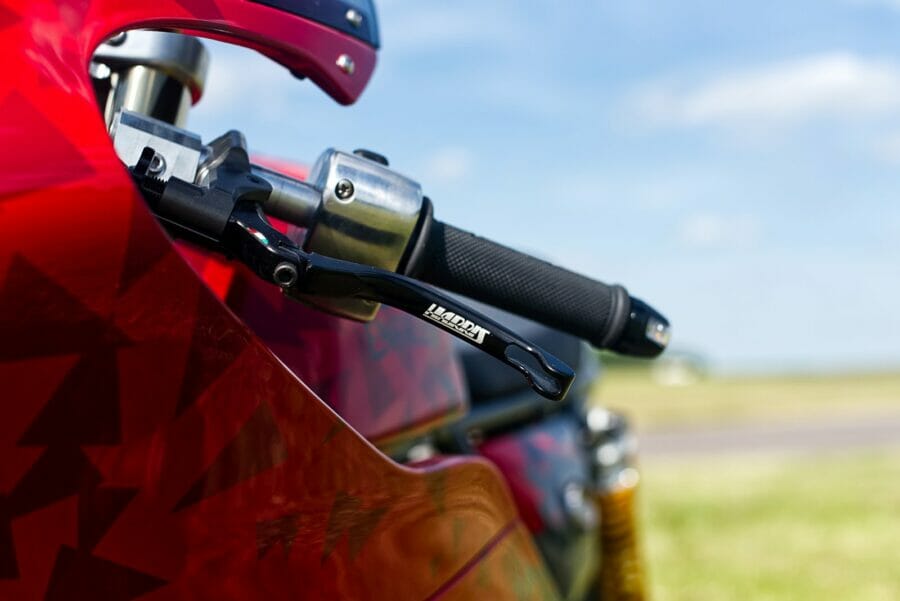 - Front Brake-Brembo P4 Axial caliper with offset 320mm Brembo disc & RCS master cylinder