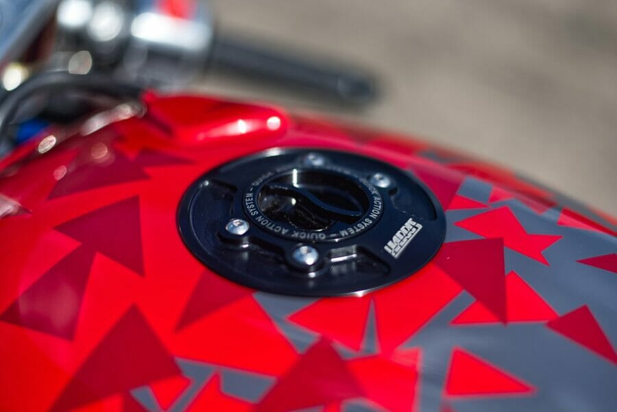 In terms of bodywork, major modifications on the Nought Tea GT includes a fairing which was designed specifically for the Continental GT 650, including all the mounts that secure it in place. They also removed the airbox and replaced it with two intake pipes that match stylistically to the custom exhaust. The subframe loop was chopped and moved in, to more closely align with the seat cowl, and a tail lamp was integrated into it. A hand-stitched seat and custom three-tone paint job complete the picture.