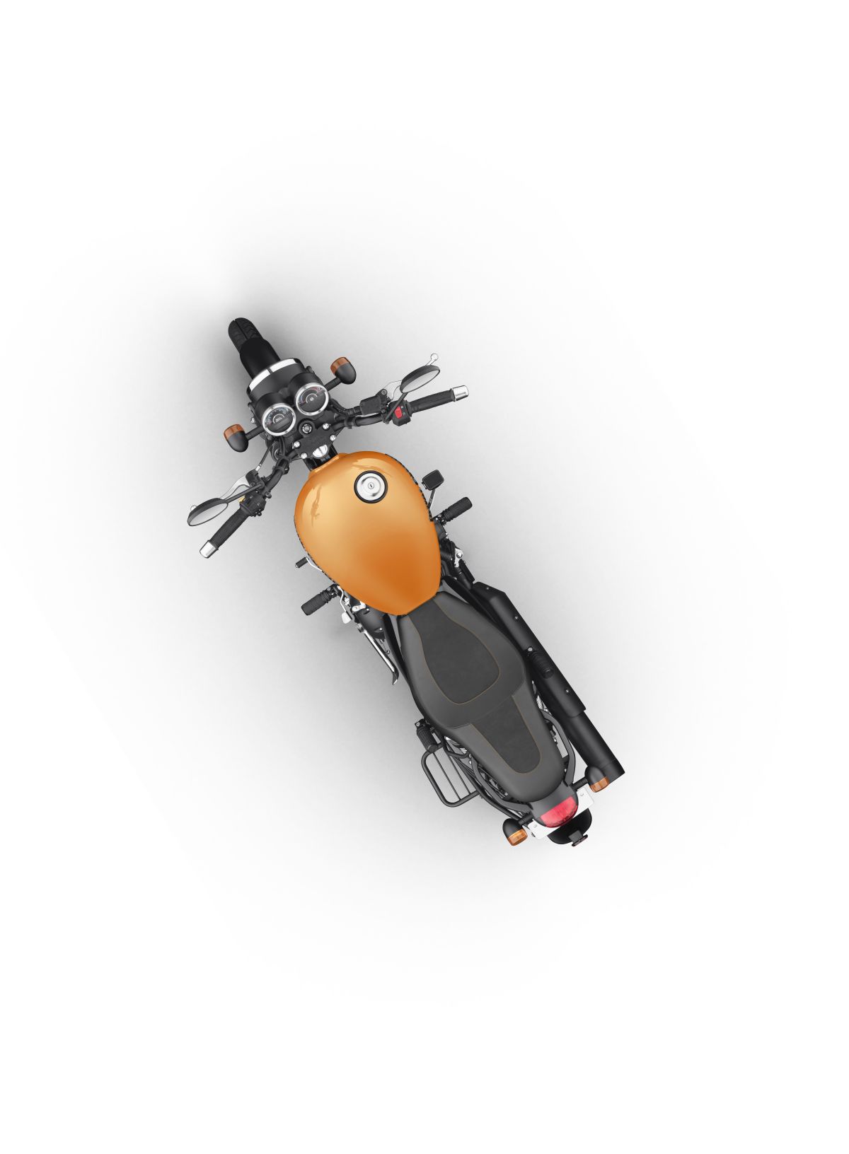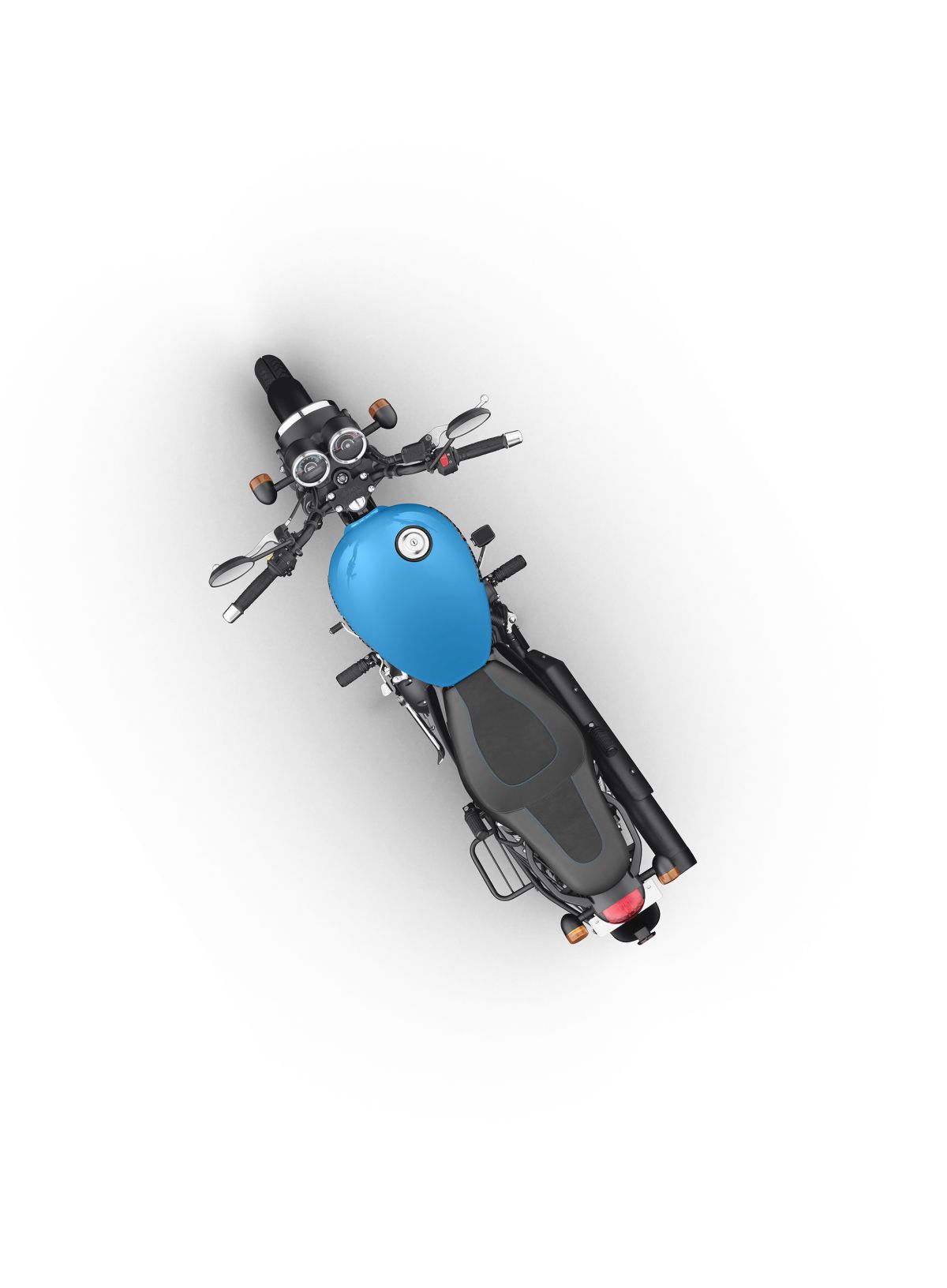 The blacked-out theme is uniformly carried over to components like the silencer, front forks, side covers, headlamp cover, indicators and grab-rail. In high contrast, the vibrant colours of the tank are coordinated with other elements on the motorcycle, such as the stitching on the seat and rim-tapes on the wheels. The new flat handlebar has been dropped to give a more aggressive, and leant-in riding attitude, and makes for a more committed riding stance.