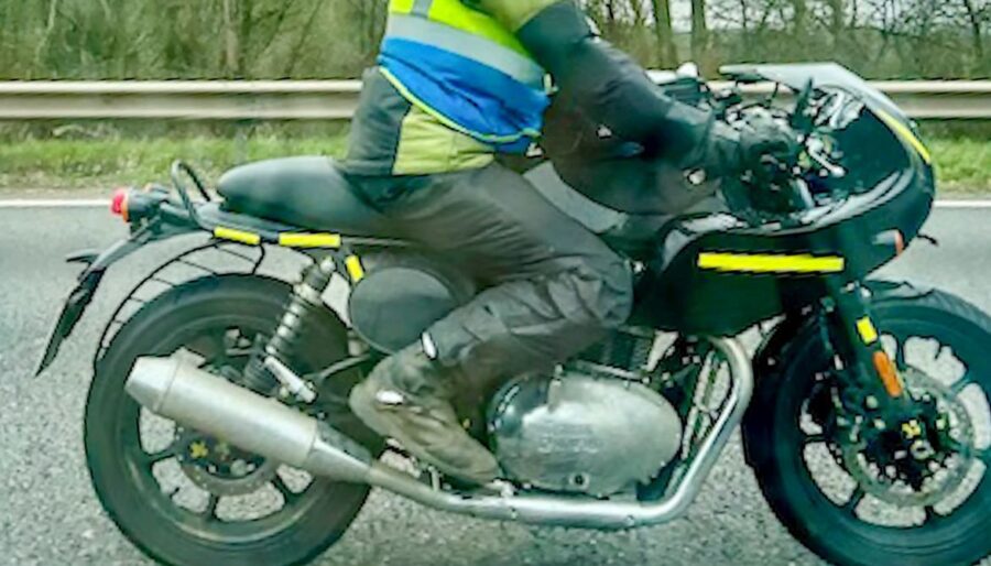 Royal Enfield fans always keep a close eye on new test bikes. The company’s next big step appears to be a new 750 cc platform. Recent spy sightings show a cafe racer based on this platform and it looks like a bigger and more powerful version of the familiar Continental GT.