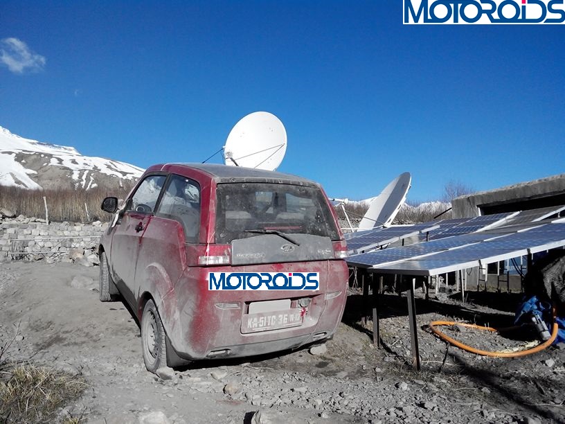There are instances in everyday life, when the biscuit we’ve just dipped in some hot tea, hangs over the cup as we freeze and stare at something that passes by. The biscuit eventually falls in the cup and adds taste to the beverage. A member of our staff had a similar moment. A person who likes finding himself in places which are nearer to the Moon (Losar is the closest town to the lake ‘Chandrataal’) and far away from home. He spotted a Mahindra ‘E2O’ being tested in Losar, Himachal Pradesh. The ‘E2O’ , an electric vehicle built for the city, was being tested where electricity is as scarce as Oxygen in Beijing.