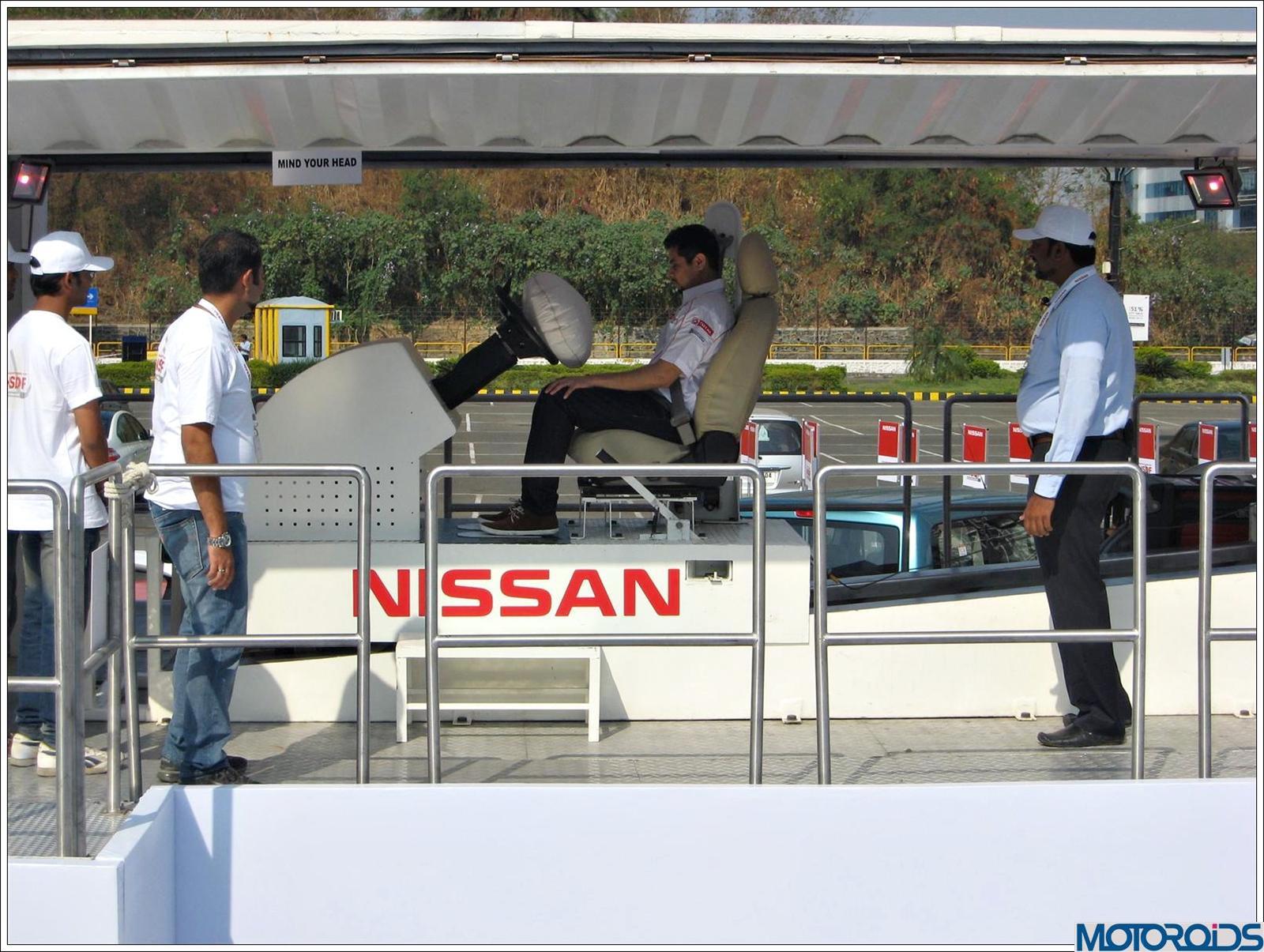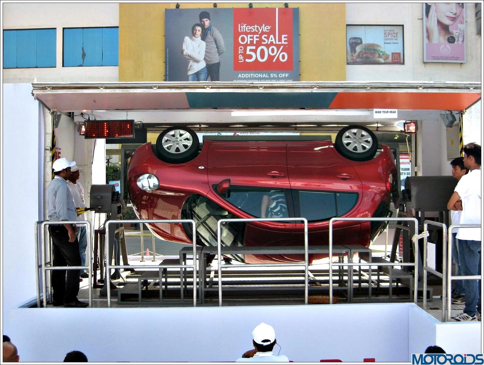 To start with, we were made to experience the ‘Low Speed Crash Simulator’ designed to imitate the shock and air bag inflation during an accident. Though the simulation was only at a speed of 5 kph, but it demonstrated the importance of having a fastened seatbelt during a mishap. An airbag is a supposedly supplementary safety measure and only effective with a buckled seat belt. On the funny part, the speed at which the airbag shot out of the steering wheel was scary 😉