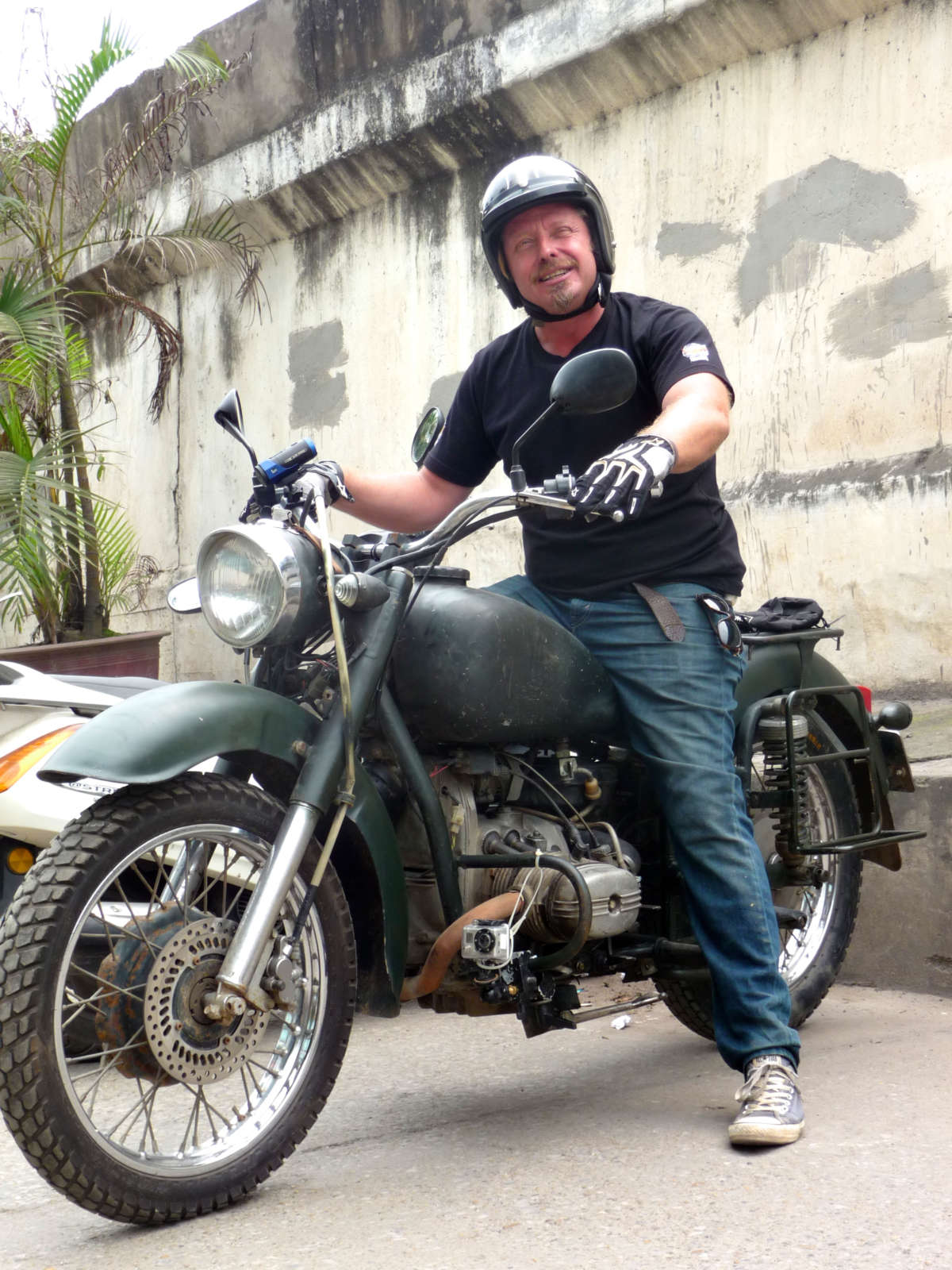 Charley Boorman on the 650cc Ural on set filming Freedom Riders Asia in Vietnam
