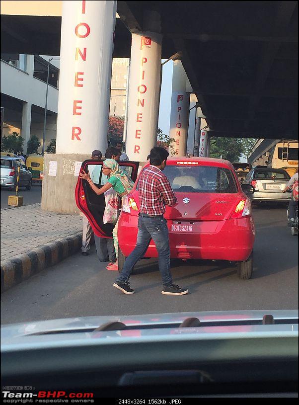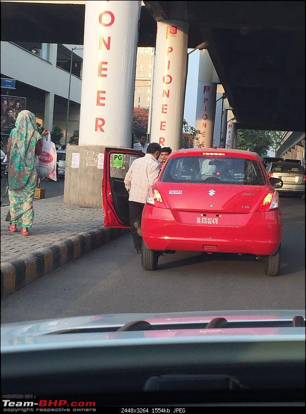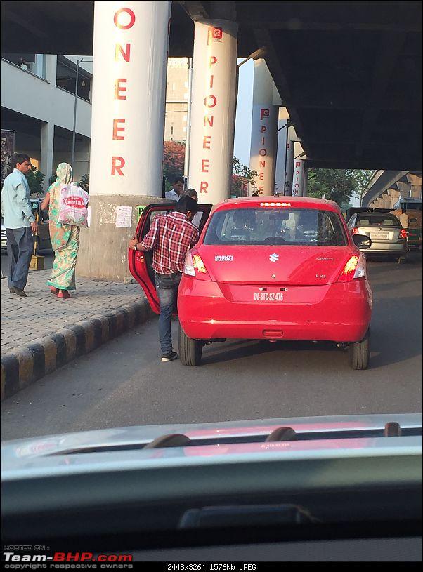On his way back from work in Gurgaon, Team-BHP member Shivjeet noticed something fishy. A red Maruti Swift on temporary plates was being driven around quite rashly. Furthermore, it was also being abused as a cab, picking up and dropping passengers illegally. Although its a common practise for chauffeurs in India to acquire some chump change by giving people rides on the sly, this Swift was brand new, and not even registered, which meant it might not even have been delivered.