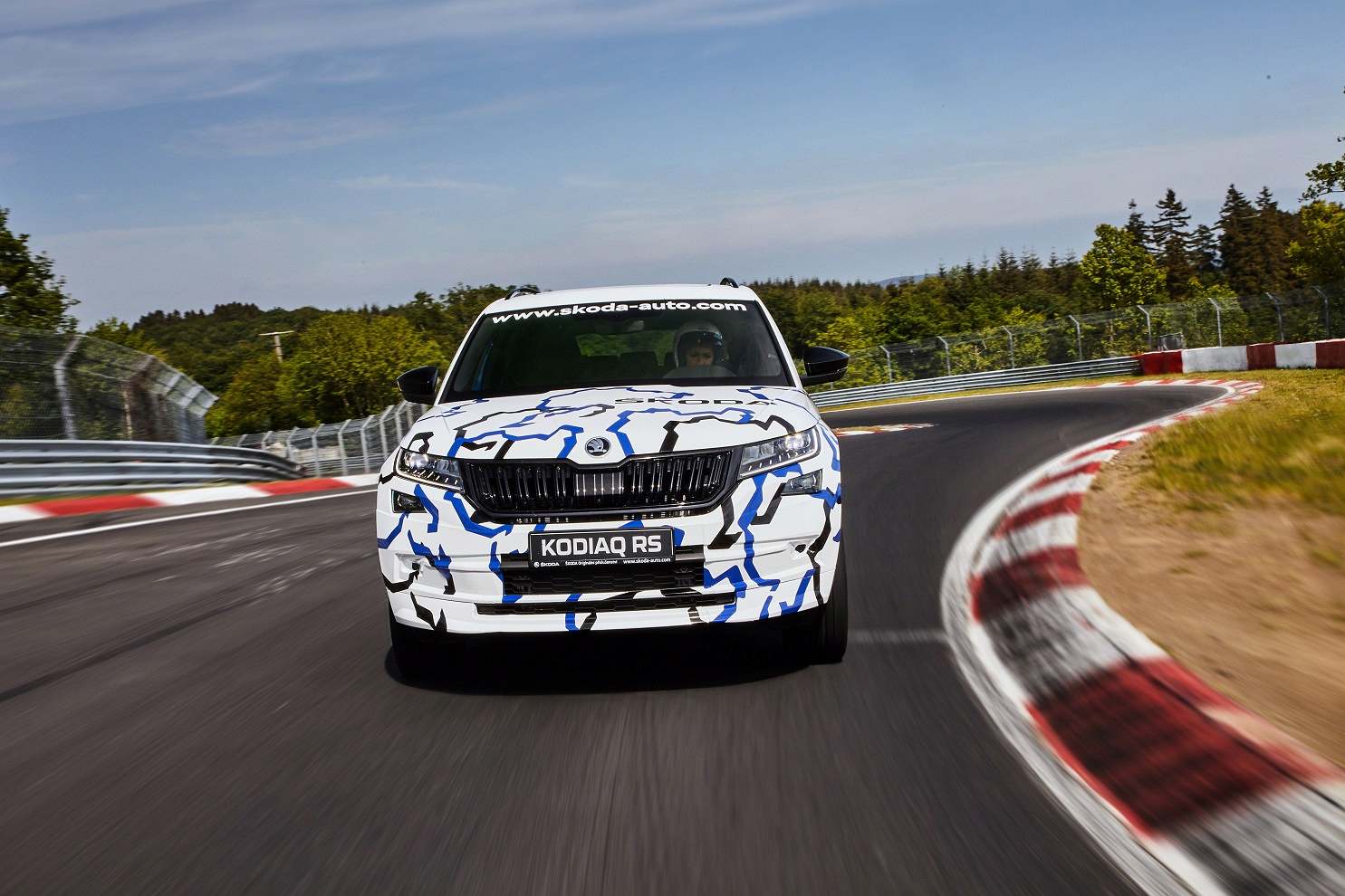 The new 2.0 BiTDI engine on th Skoda Kodiaq vRS produces 239 PS. In the Kodiaq model range, the 2.0-litre BiTDI diesel engine is exclusively reserved for the vRS, and thanks to Dynamic Sound Boost, the high-torque diesel engine’s power is immediately apparent. With adaptive Dynamic Chassis Control (DCC) including Driving Mode Select and progressive steering, the all-wheel-drive vehicle – which was still in its camouflage wrap during its appearance in the Eifel region – was perfectly equipped for its record-breaking lap at the Nordschleife.