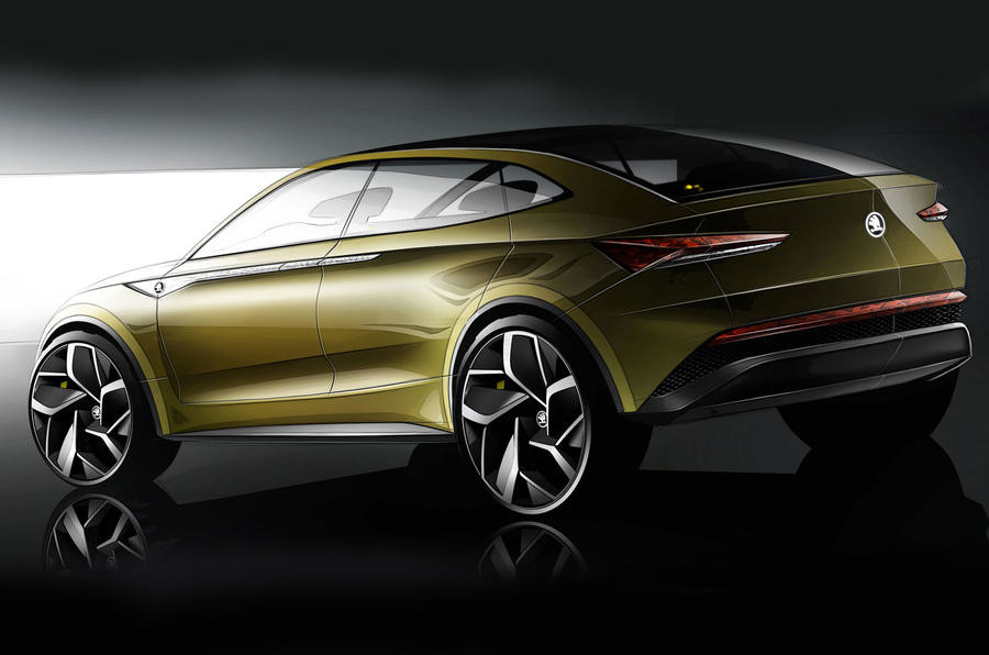 At 4,645 mm long, 1,917 mm wide and 1,550 mm tall, the Skoda Vision E has great road presence. Thanks to the long wheelbase of 2,850 mm, as well as the short overhangs at the front and rear, the designers have created an extremely spacious interior – as always with Skoda. In the future-oriented vehicle concept, the elevated seating position typical of SUV models and the generous space combine with a dynamic silhouette and gently sloping roof line in the style of a coupé.