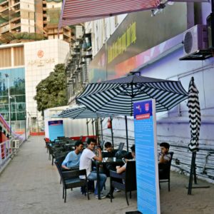 The experience begins with you drawing your wallet and parting with some money to book yourself a slot. If you have doubts, you can take a virtual tour of the facility through the screen placed before the ticket counter that lets you understand the setup in detail. Slots are available for 3, 6 and 8 minutes. You can wait for your turn in an open air cafeteria that serves a variety of beverages and snacks.