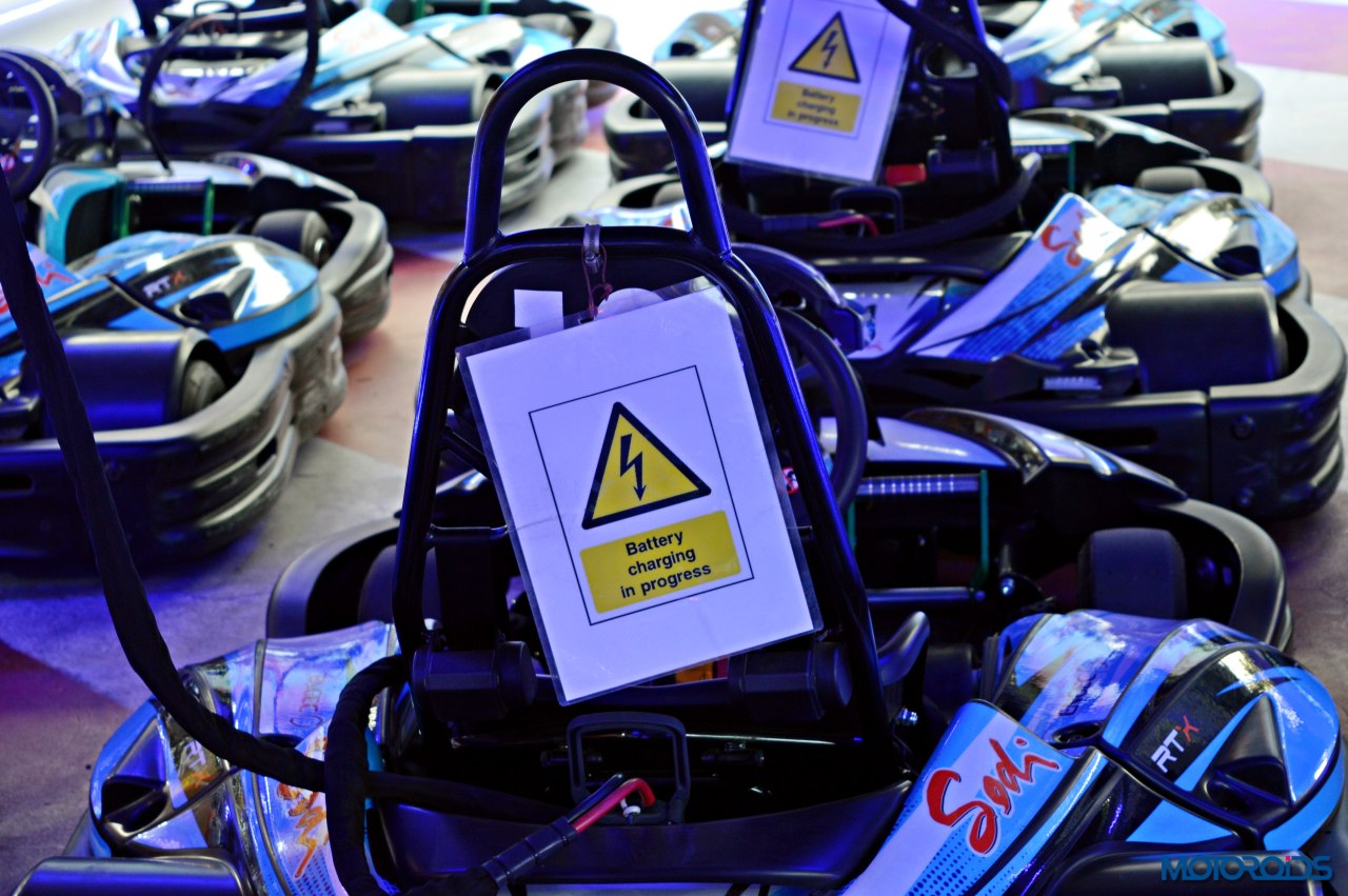 These karts have been programmed to run for a maximum of eight minutes. Power is fed through special quick charge ports which recharge the batteries in a jiffy. On full blast, the karts would run for as many minutes as they’ve been charged for. So for a 8 minute runtime, the karts will have to be charged for as many minutes, ditto for smaller durations.