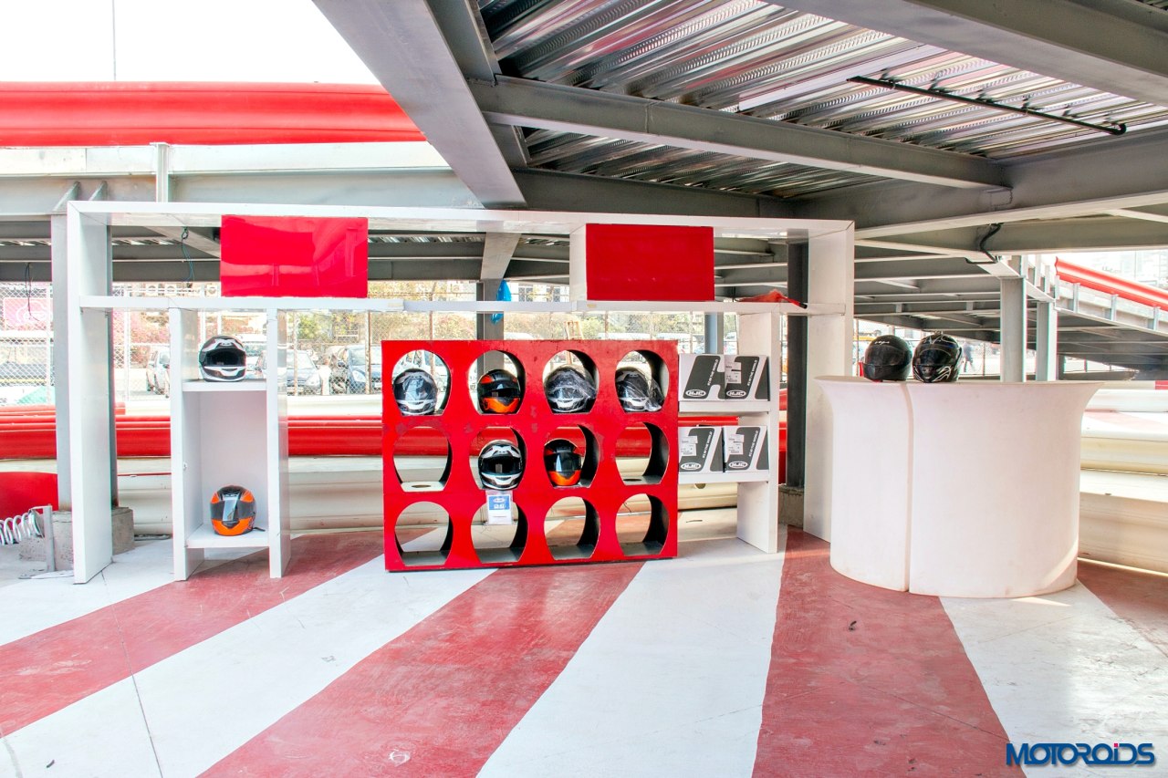What impressed us was the attention to hygiene and the quality of gear the team at Smaaash has put together for the customers. Unlike other Karting grounds where the customers have to make do with sub-standard, dirty safety gear, you get top notch HJC helmets, along with a hair net to keep things safe and sanitary. You are provided neck braces to prevent a whiplash injury. Those who are casual enough to arrive in bathroom slippers, or the PYTs who walk in in their stilettos can avail of shoes for no extra cost. Since there’s no heat emanating from these electric machines, you don’t require the once essential elbow protector. Just put on your helmet and the neck brace, and you’re good to go.