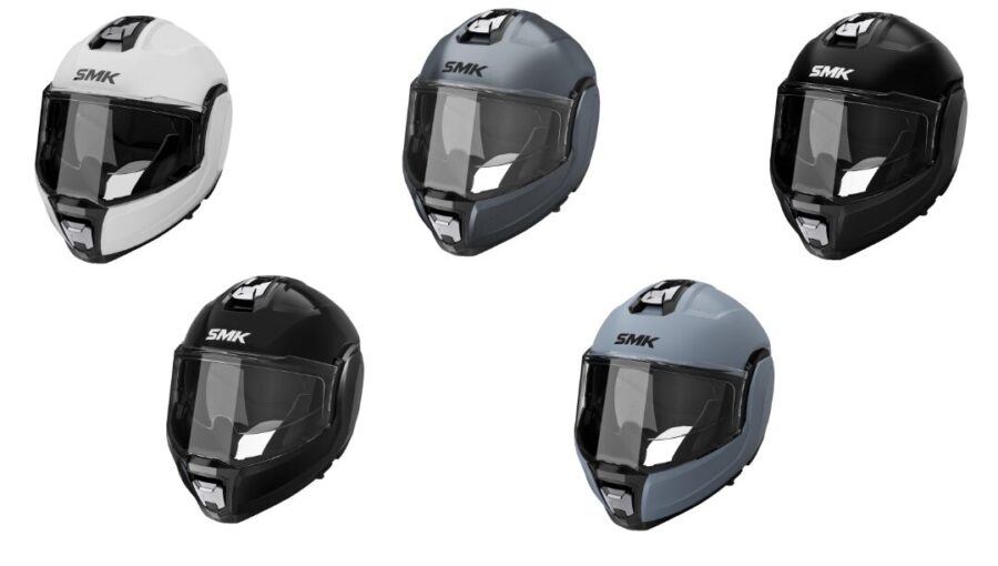 The first one is called the SMK Cygnus. It’s a flip-back helmet with the chin bar able to rotate 180 degrees. It can be used as a full-face and open-face helmet by riders. The shell is made from Energy Impact Resistant Thermoplastic (EIRT) and it also gets a multi-density EPS liner for added protection.